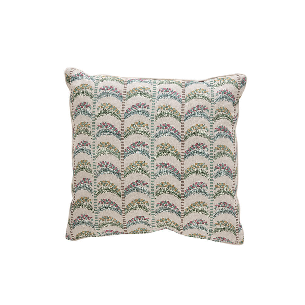Cojín decorativo cuadrado Loreto Coord espigas algodón, lino azules rojas sobre fondo crudo 50x50cm