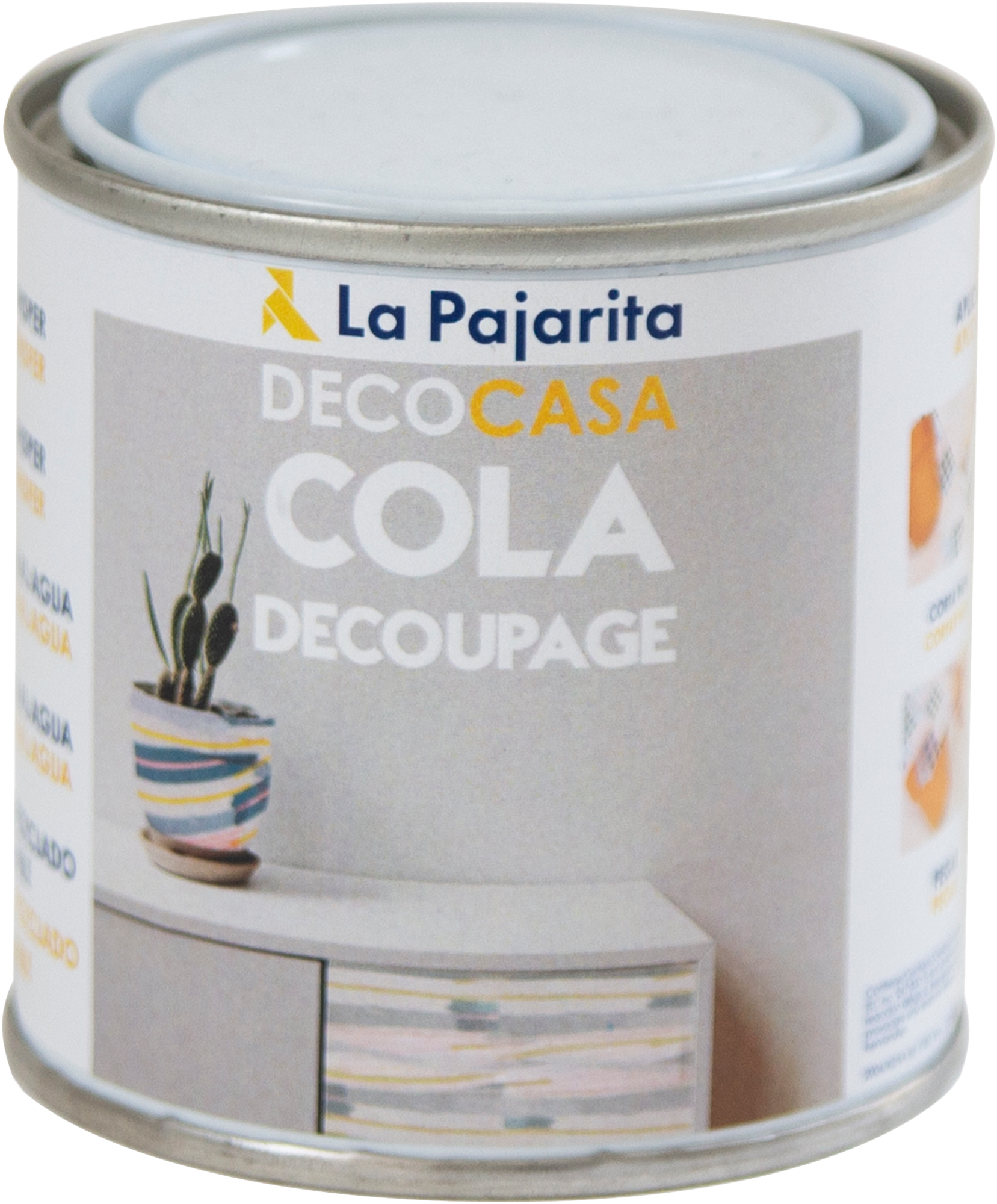 Cola incolora con acabado liso ideal para proteger todo tipo de superficies tanto de interior como de exterior. Es muy fácil de aplicar y se seca completamente transcurridas 24 horas. Se puede teñir con colorantes universales y es compatible con habitaciones húmedas. Cola adhesiva al agua, para personalizar cualquier tipo de mueble u objeto con papel decorativo. Cuenta con un rendimiento de 8m²/l. Contenido: 0,25 litros.