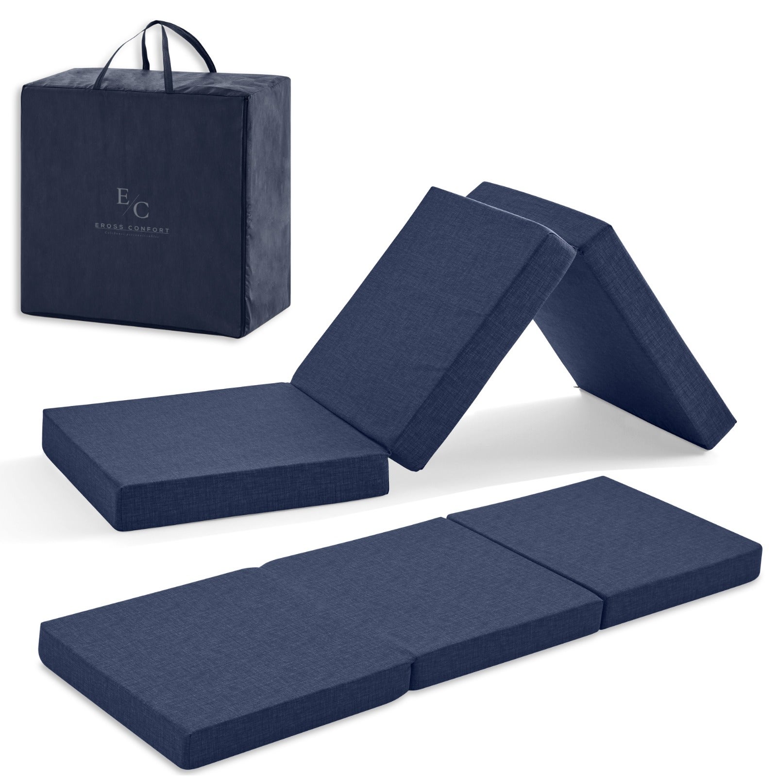 Colchón Plegable 75x195. Transpirable Funda Lavable y Bolsa de Transporte. Altura 10 cm Azul