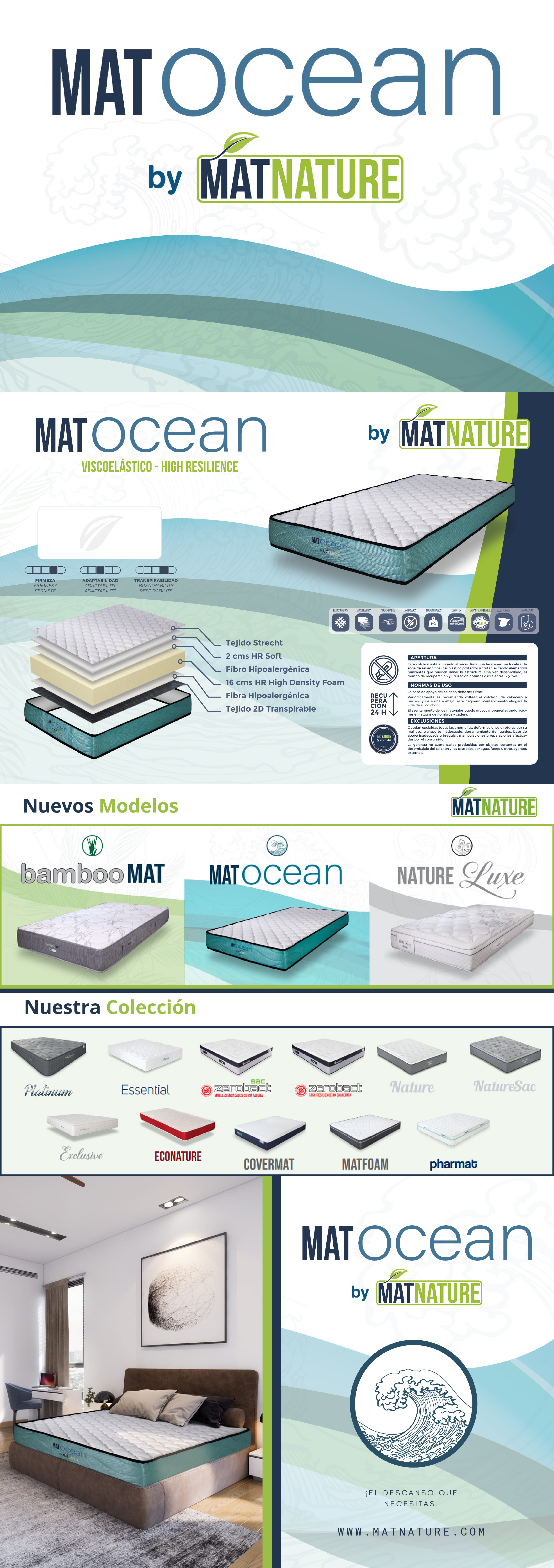 Colchón MatOcean Reversible de altura 21 cm (+/- 1cm). Cara Superior: Acolchado con tejido Strech antideslizante y transpirable, con 2 cm de ViscoSoft y fibra hipoalergénica. Núcleo: Núcleo de High Resilience de 17 cm de grosor, que proporciona una excelente adaptabilidad para un correcto descanso, gracias a su dureza media. Lateral: Platabanda en tejido 3D y fibra hipoalergénica para una óptima termorregulación del núcleo. Cara Inferior: Acolchado con tejido 3D transpirable y capa de fibra hipoalergénica. Todos nuestros colchones están fabricados con tejidos hipoalergénicos, antiácaros y antibacterias, y disponen de certificado OEKO-Tex. STANDARD 100 by OEKO-TEX. Producto fabricado en España. El Colchón se entregan enrollado.