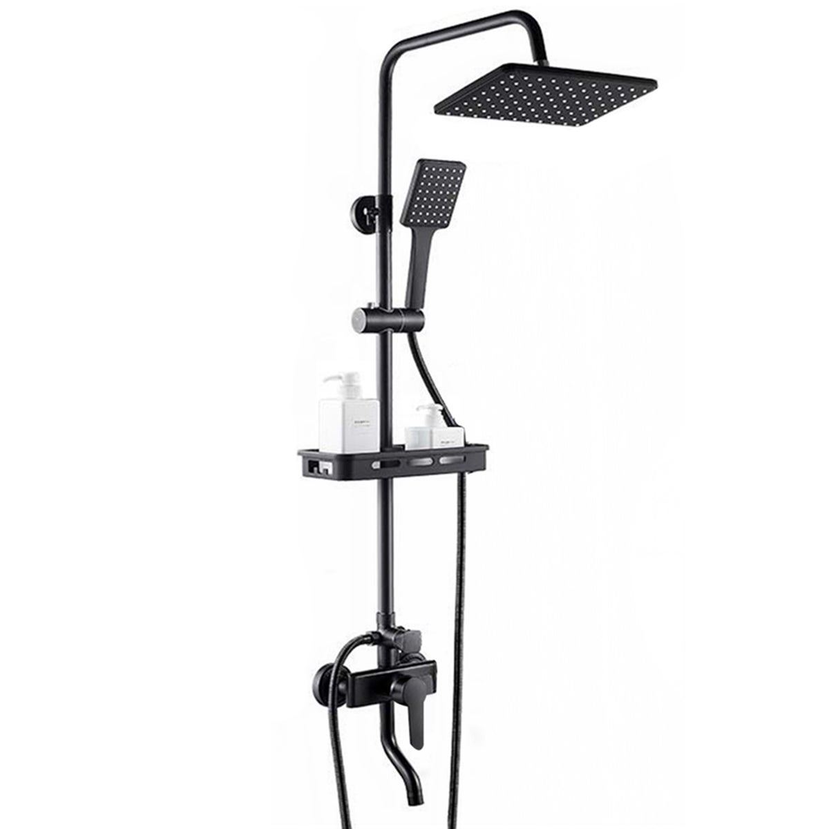 Columna de ducha con grifo Rociador de ducha, Altura regulable H.81-119 cm, Negro, Baño
