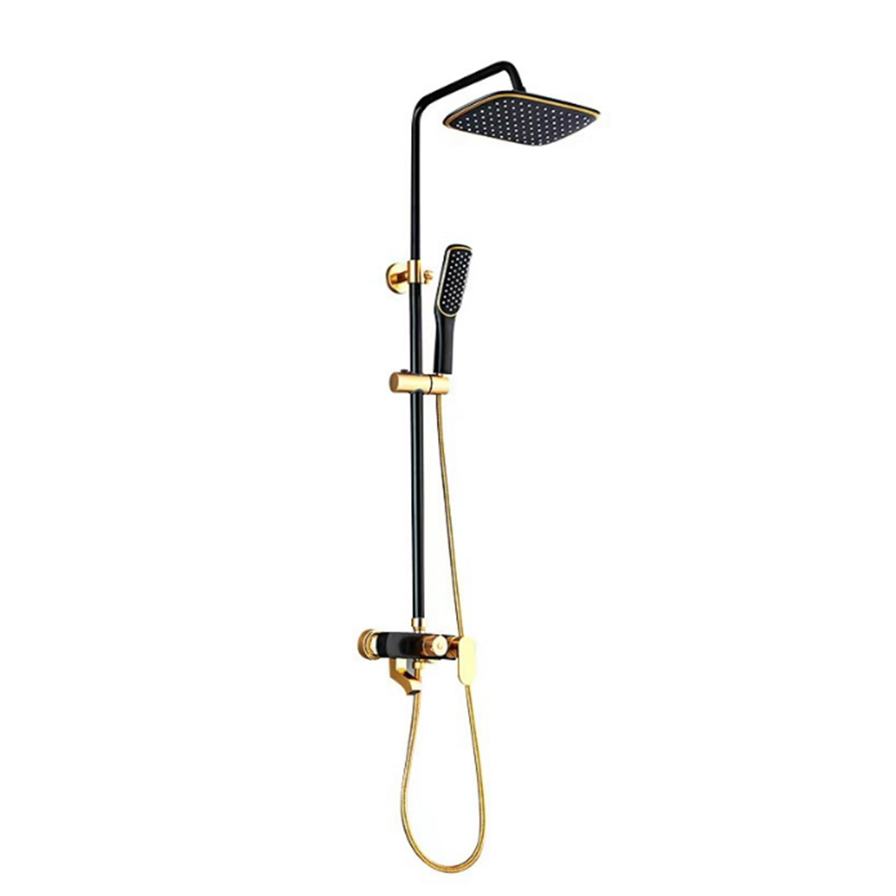 Columna de ducha grifo de baño de pared con rociador de latón cerámico oro negro