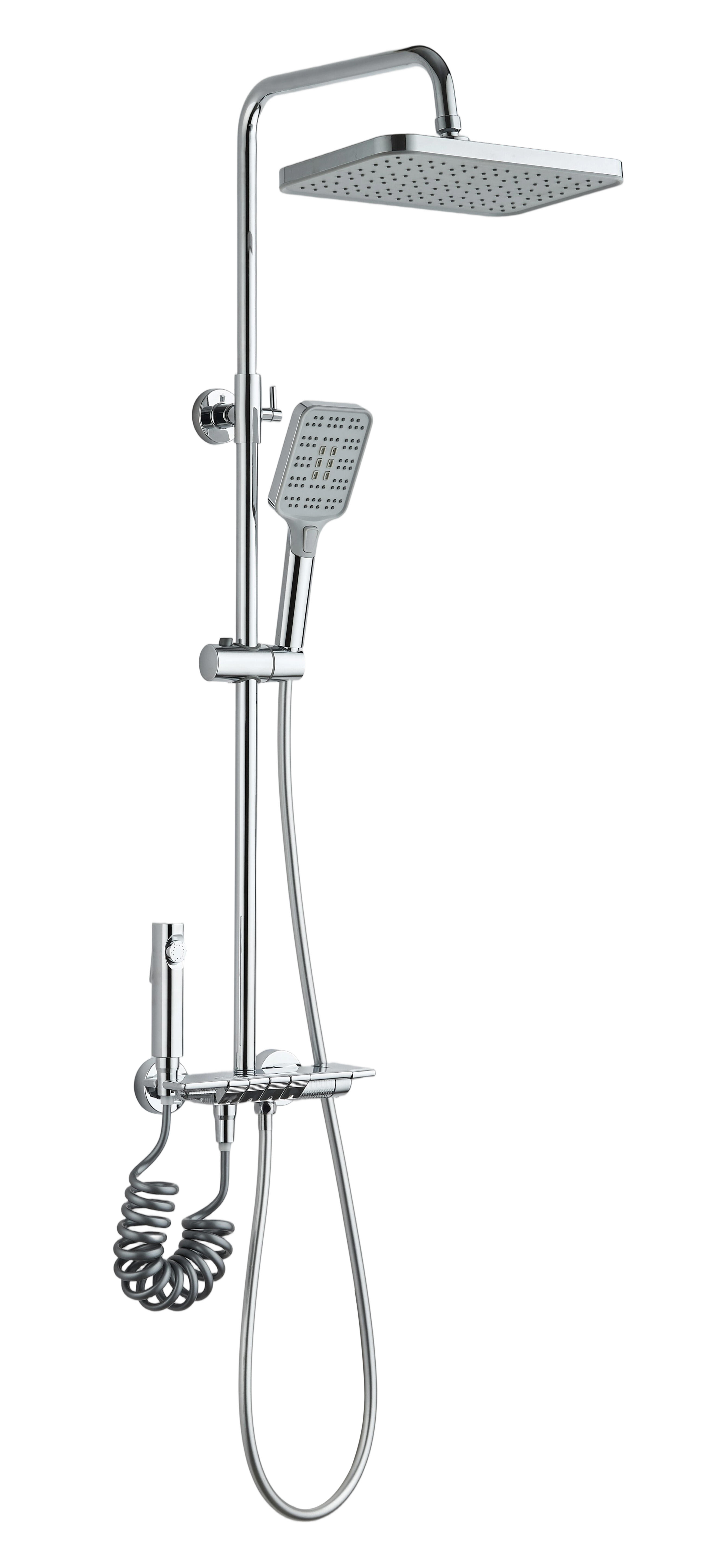 Conjunto para ducha telescopico EDOUARD ROUSSEAU con grifo estilo Piano cromado de 4 funciones ducha superior, ducha de mano, ducha higienica y salida bañera.
