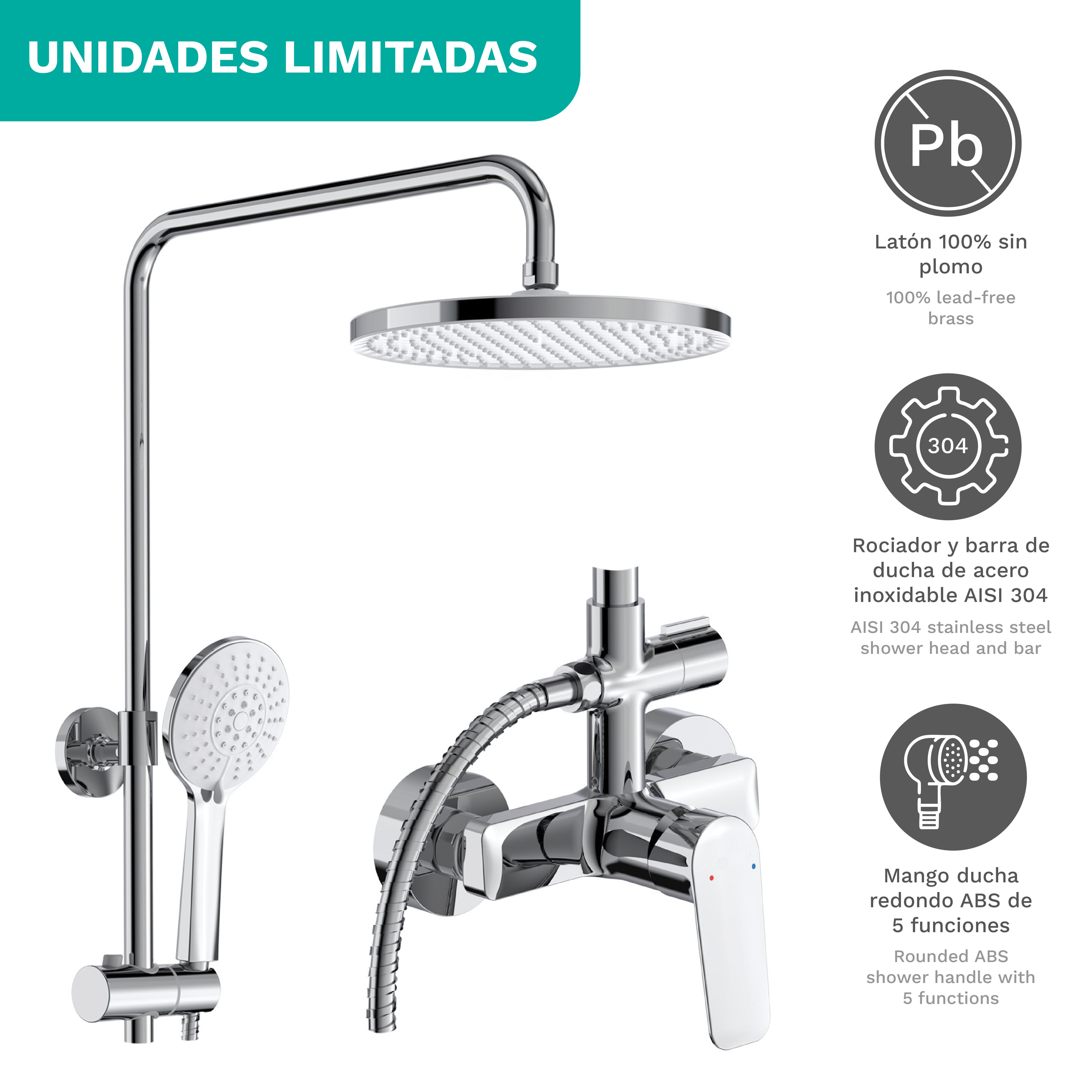Ideal para quienes buscan un grifo elegante, funcional y eficiente. ¡Renueva tu ducha y ahorra agua sin renunciar al confort!