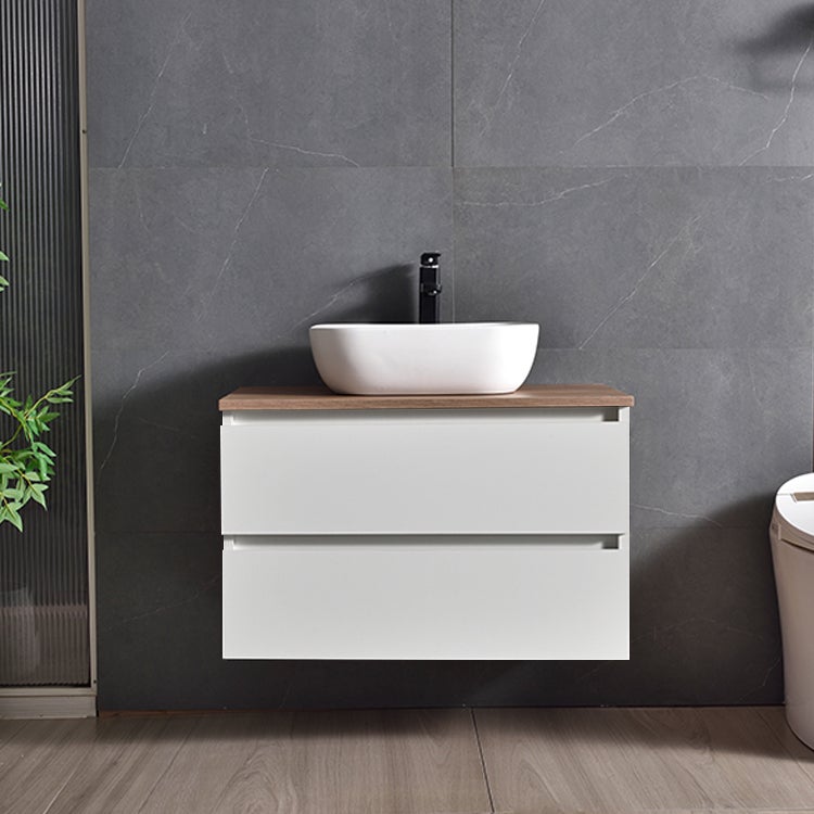 Conjunto Mueble de Baño 78x48x48 cm Blanco y encimera de madera con Lavabo sobre encimera