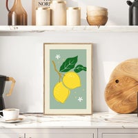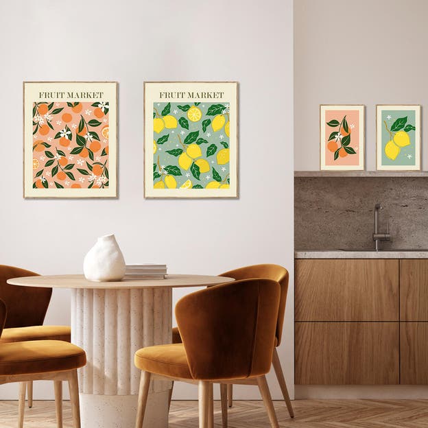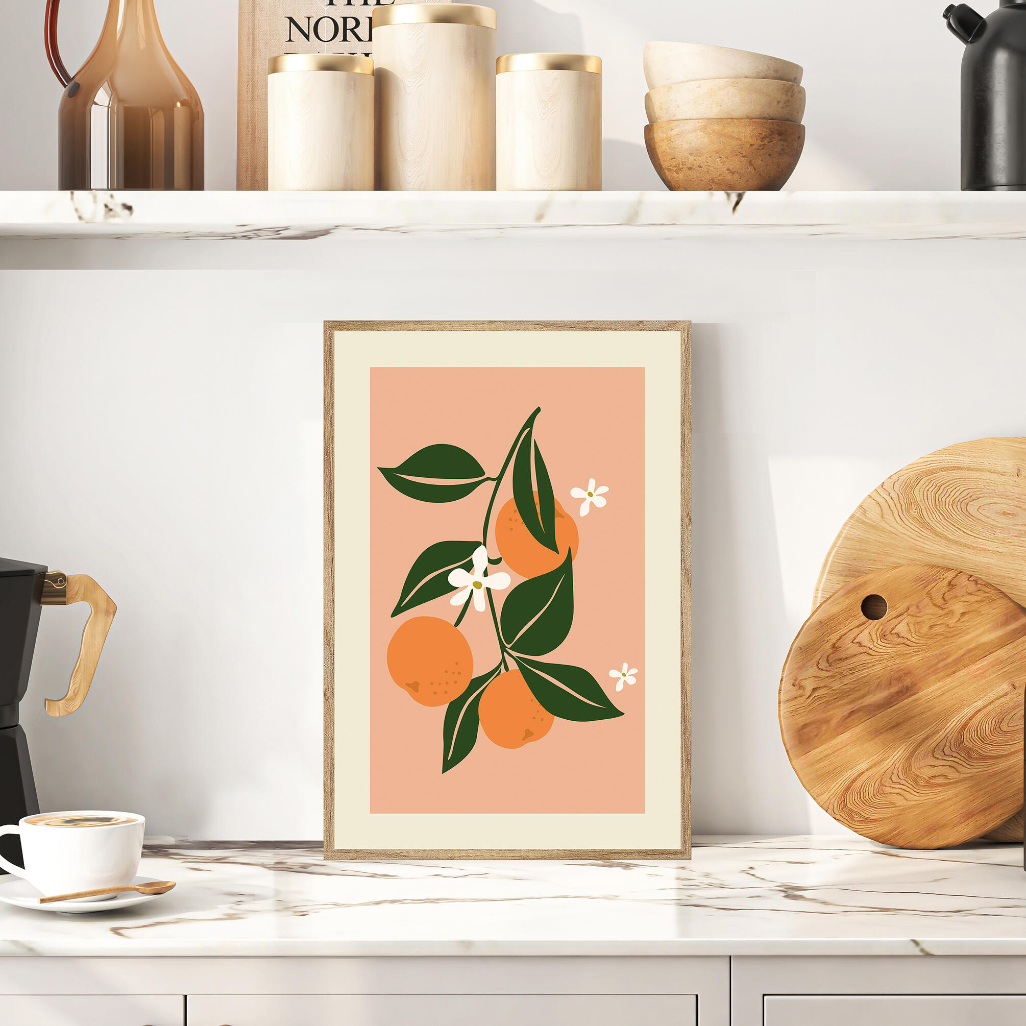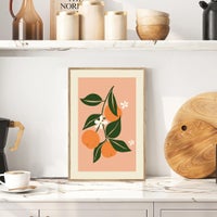 cuadro con moldura BCN 20mm en color haya G tostado. Diseño de 3 naranjas. Medida 20x30cm interior