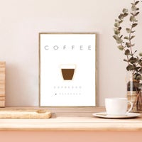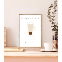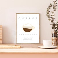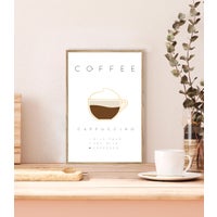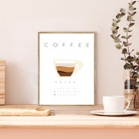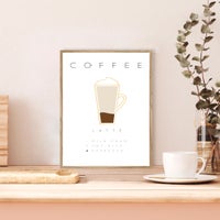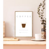 Cuadro con moldura BCN 20mm haya G tostado con un diseño de un dibujo de café latte. Medida 20x30cm interior