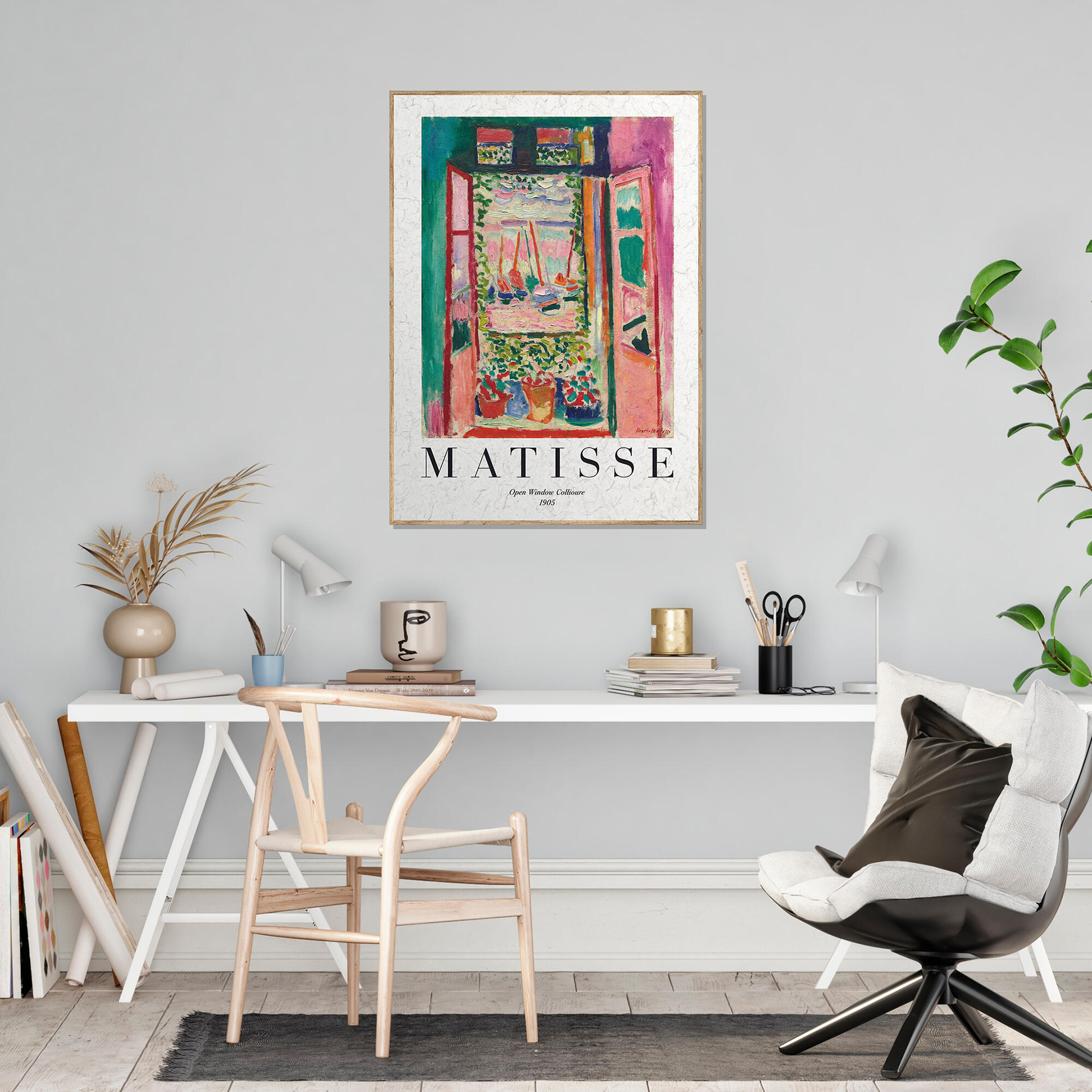 cuadro con moldura decoart 25mm color haya G tostado. Diseño de Matisse La Ventana Abierta 50x70cm interior