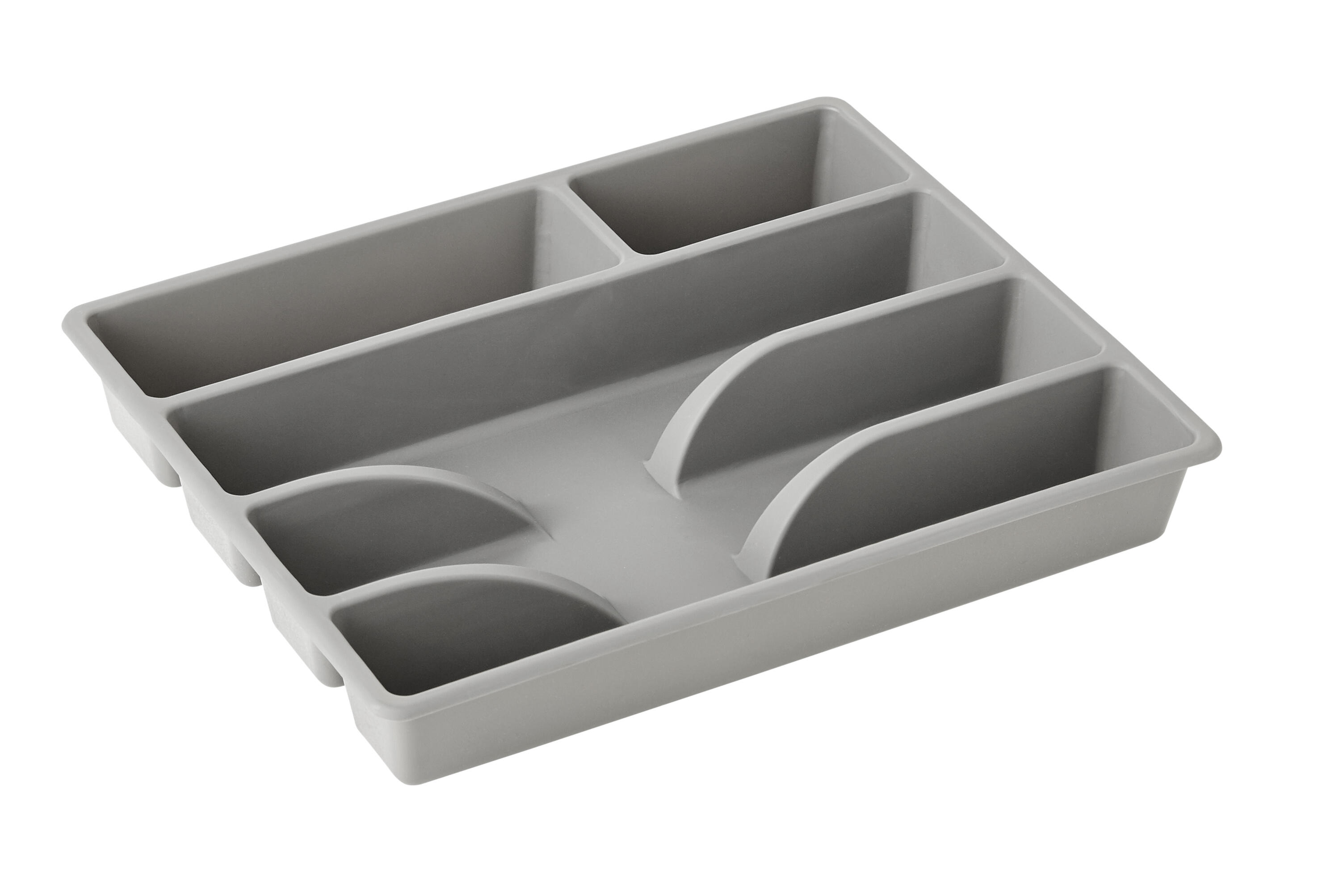 Cubertero universal Delinia fabricado en polipropileno con acabado de color gris y aspecto mate. Cuenta con 5 compartimentos y 1 separador. Es apilable. Ofrece 3 años de garantía. Medidas: 30,8 x 4,5 x 26 cm (ancho x alto x fondo).