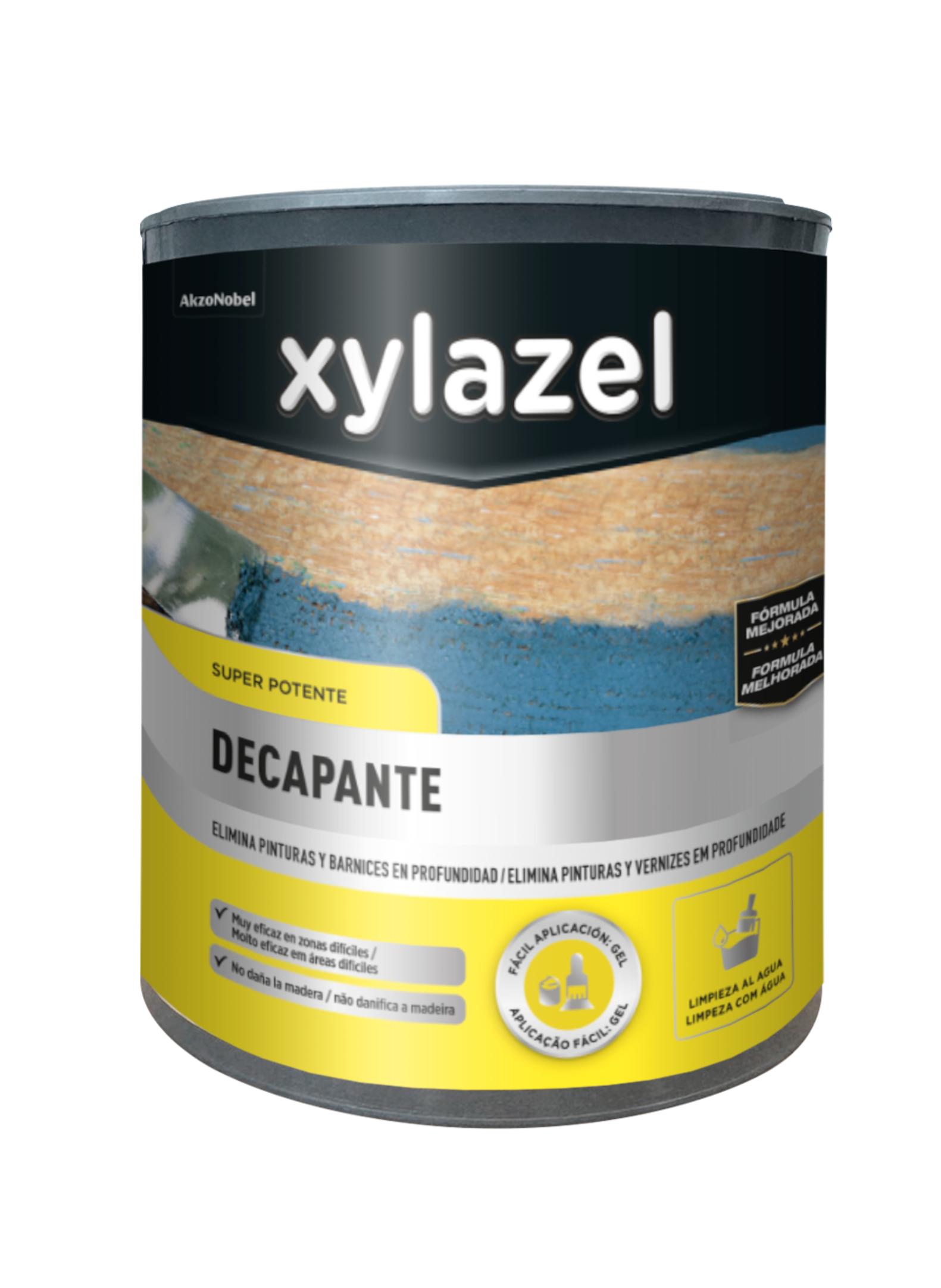 Xylazel Decapante incoloro para todo tipo de maderas de interior o exterior. No gotea y está listo para el uso. Para conseguir un acabado perfecto se recomienda aplicar una capa con un pincel o rodillo. Contenido: 0,750 L