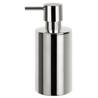 Dispensador de jabón de la serie Tube, fabricado en porcelana y con acabado cromado. Ideal para colocar sobre el lavabo y utilizar la cantidad de jabón que necesites. Tiene una capacidad de 200 ml. Puedes combinarlo con otros complementos de baño de la serie Tube que encontrarás en Leroy Merlin. Medidas: 7 x 16 cm (diámetro x alto).