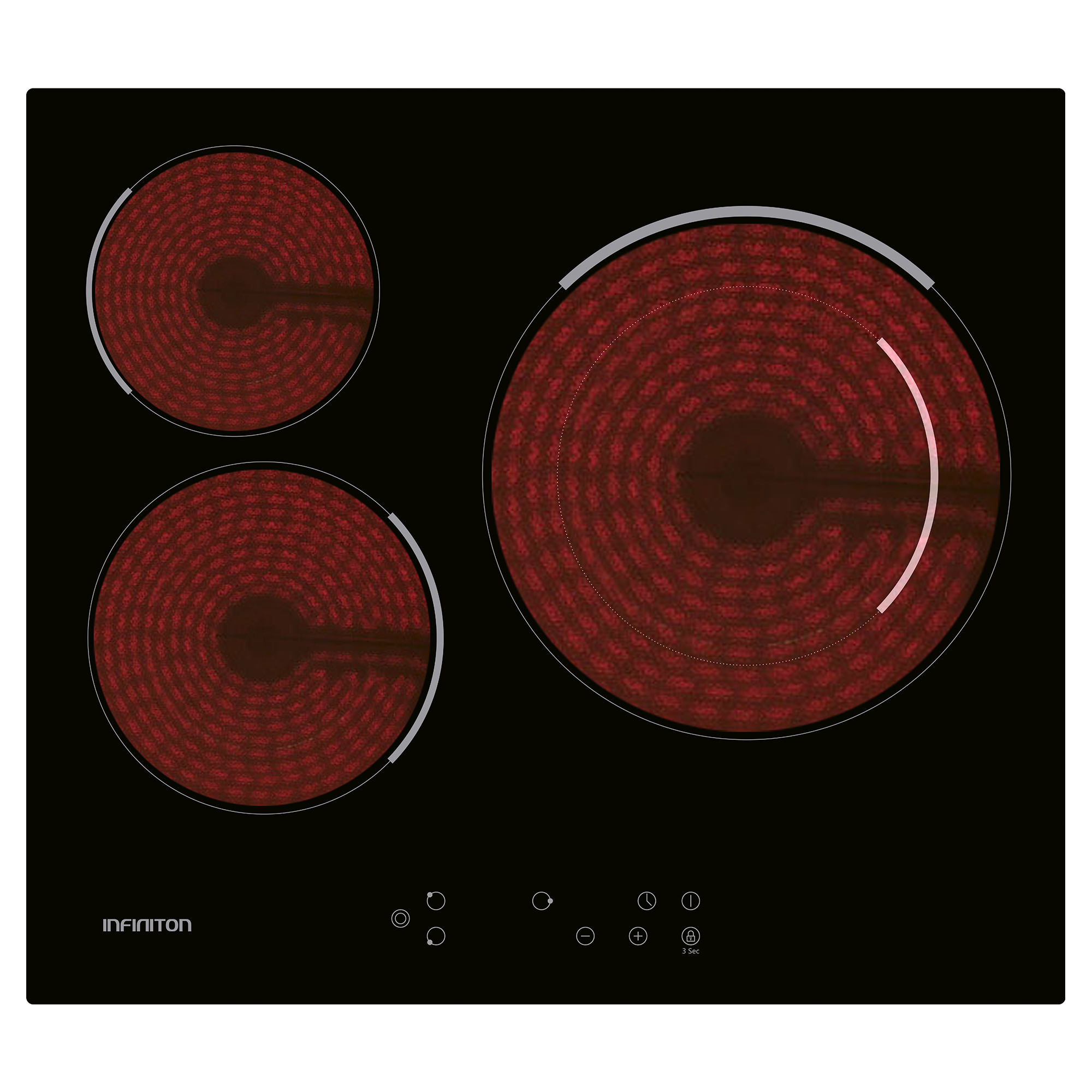 Encimera Vitroceramica Infiniton VITRO-A3F - 9 niveles, 3 zonas,Control táctil, 60cm