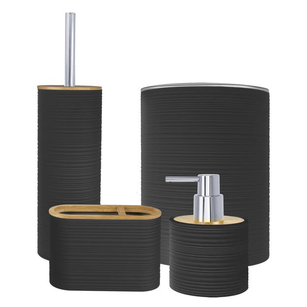 Escobillero de baño Nature Deblanch fabricado en plástico de color negro y acabado mate. Está diseñado para colocar en el suelo, por lo que no será necesario que realices perforaciones en la pared para instalarlo. Medidas: 9,2 x 35,5 x 9,2 cm (ancho x alto x fondo).