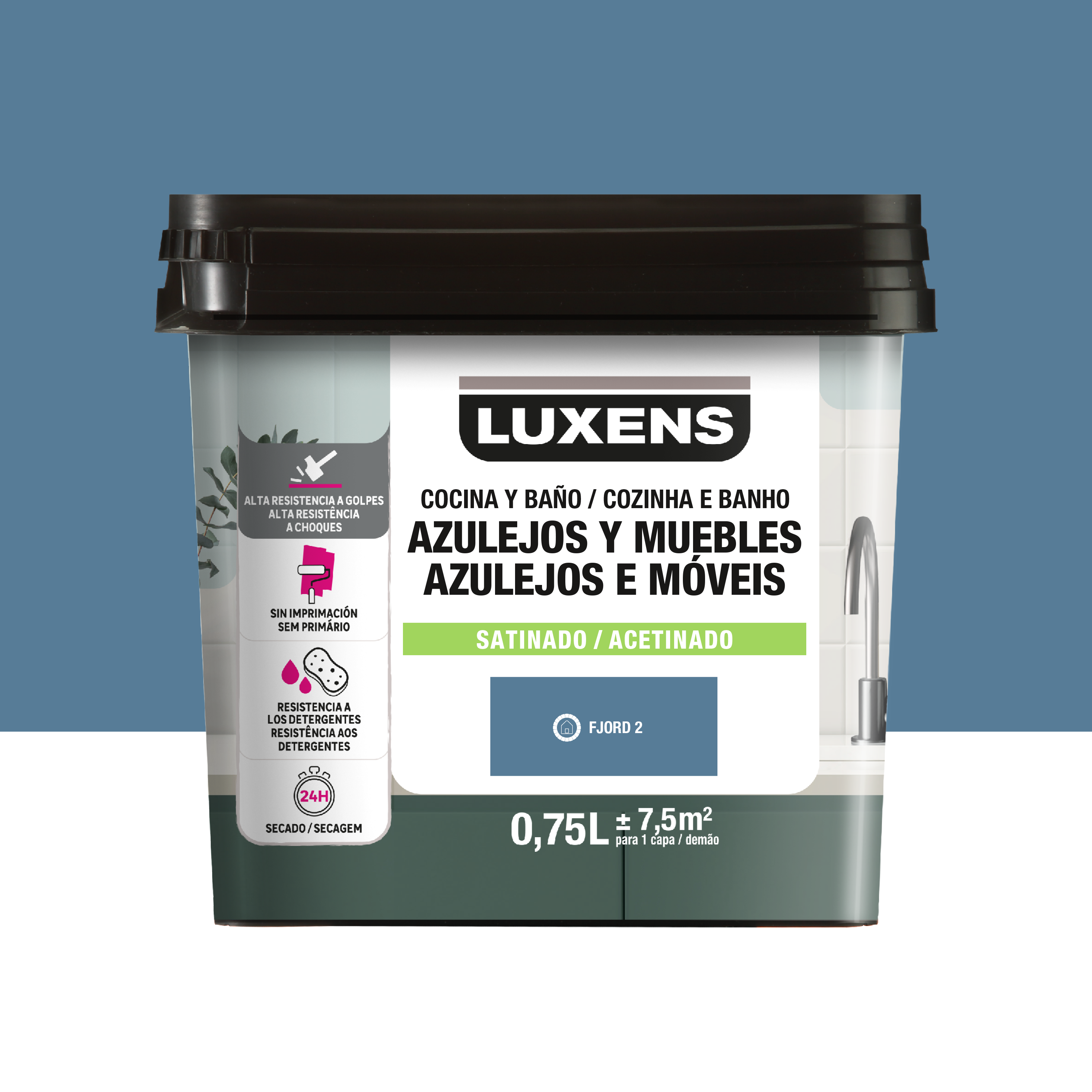 Esmalte de interior multimateriales cocinas y baños LUXENS color fjord 2 satinado 750ml para azulejos de pared