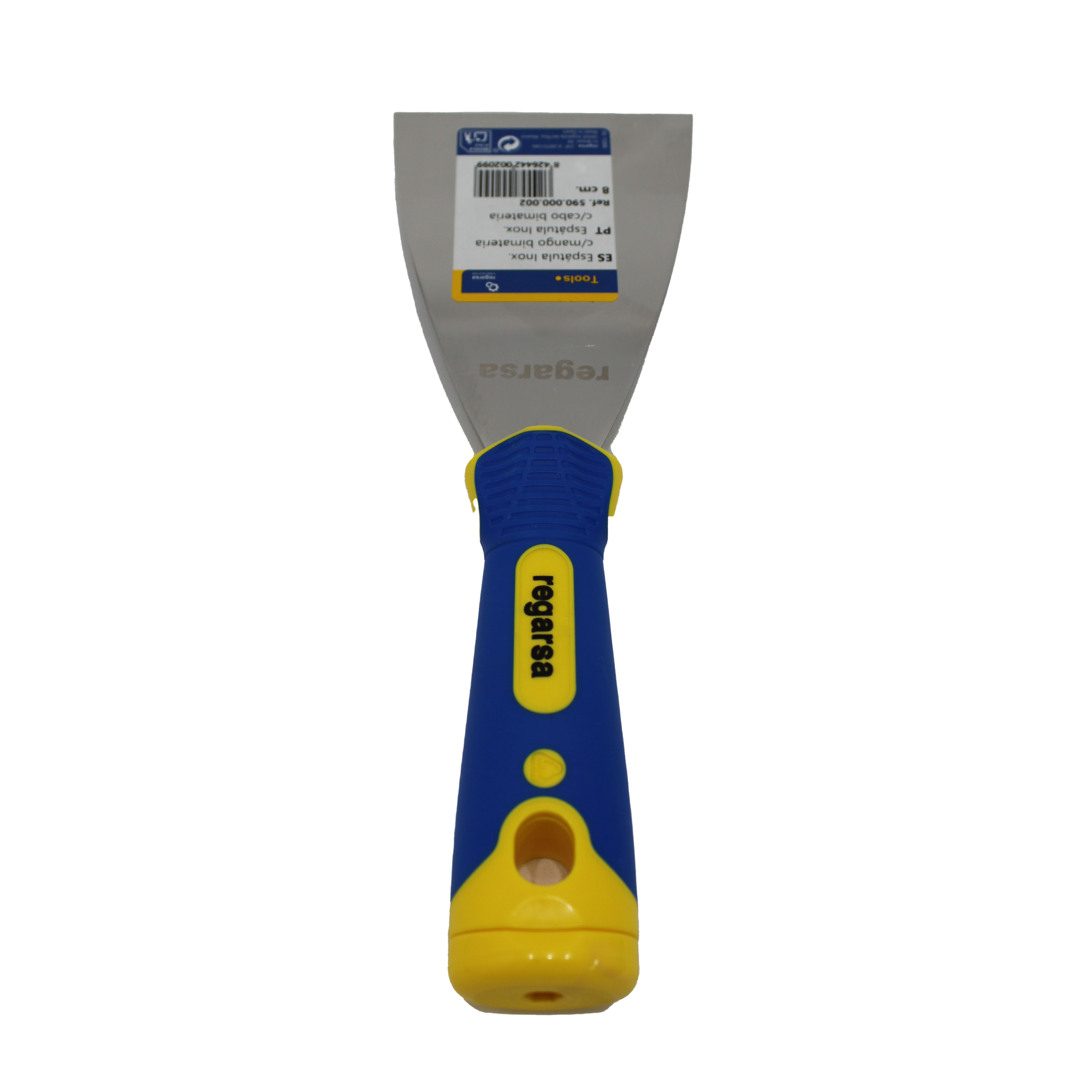 ESPÁTULA DE ACERO INOXIDABLE CON MANGO BIMATERIA - 8 cm (caja de 12 uds.) Esta espátula de 8 cm con hoja de acero inoxidable y mango bimateria está diseñada para ofrecer precisión, comodidad y resistencia en trabajos de aplicación, reparación o alisado. Su hoja flexible permite trabajar con masillas, yesos y adhesivos de forma controlada, facilitando una distribución homogénea sobre diferentes tipos de superficies. El mango bimateria, ergonómico y antideslizante, proporciona un excelente control durante el uso, incluso en condiciones exigentes. Gracias a su diseño equilibrado y a la resistencia del acero inoxidable, la herramienta conserva su forma y filo incluso tras un uso continuado, siendo ideal tanto para profesionales como para usuarios exigentes en trabajos de bricolaje. Con sus 8 cm de ancho, esta espátula es perfecta para tareas generales de aplicación de material, desde relleno de juntas y reparación de imperfecciones hasta acabados decorativos. Se presenta en caja de 12 unidades, ideal para equipos de trabajo, almacenes o reposición en obra.