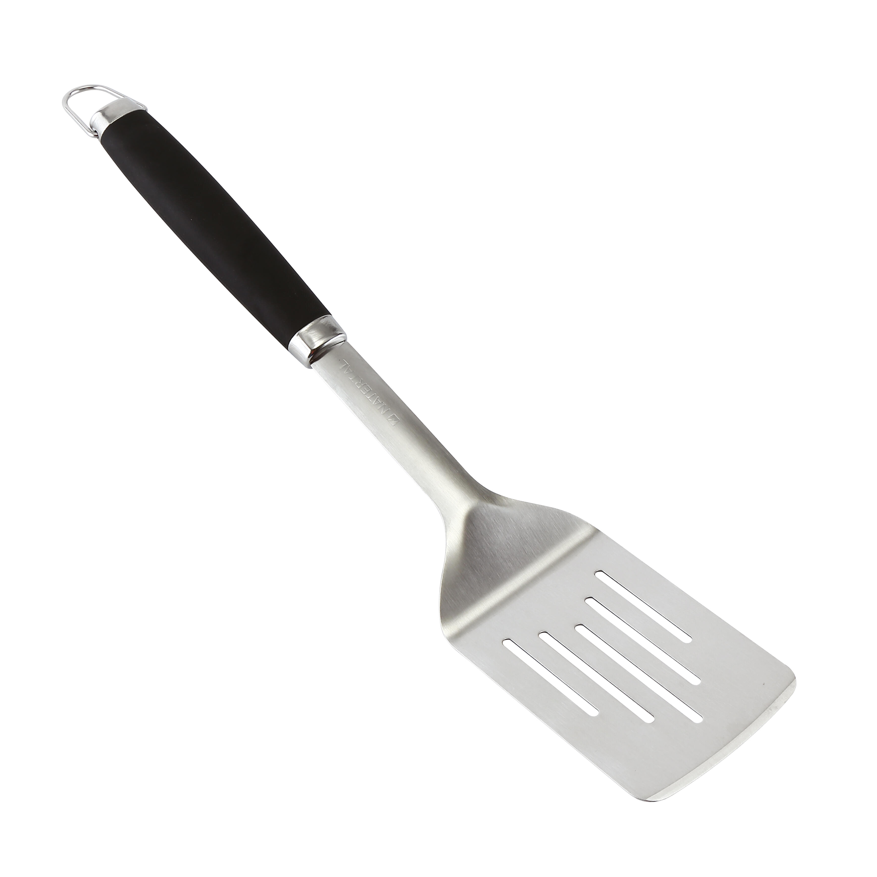 Espátula de acero inoxidable Naterial con terminación de plástico indicada para mejorar y facilitar el tiempo que pasas cocinando en la barbacoa. Con su diseño podrás recoger los alimentos puestos en las parrillas, especialmente hamburguesas o pescados, sin que se estropee el material de la parrilla. Si buscas la mejor relación calidad precio en tus accesorios de cocina para barbacoa, confía en los productos Naterial.