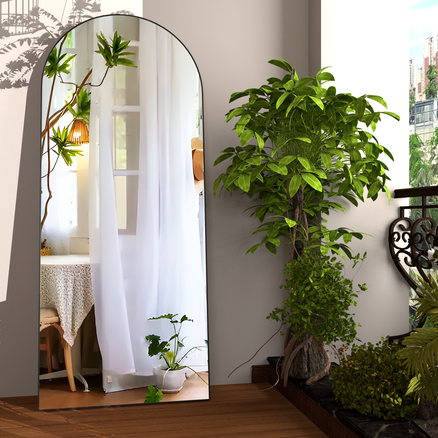 Espejo arqueado de cuerpo entero, independiente, colgante, espejo de piso grande, marco de aluminio negro, adecuado para sala de estar y dormitorio