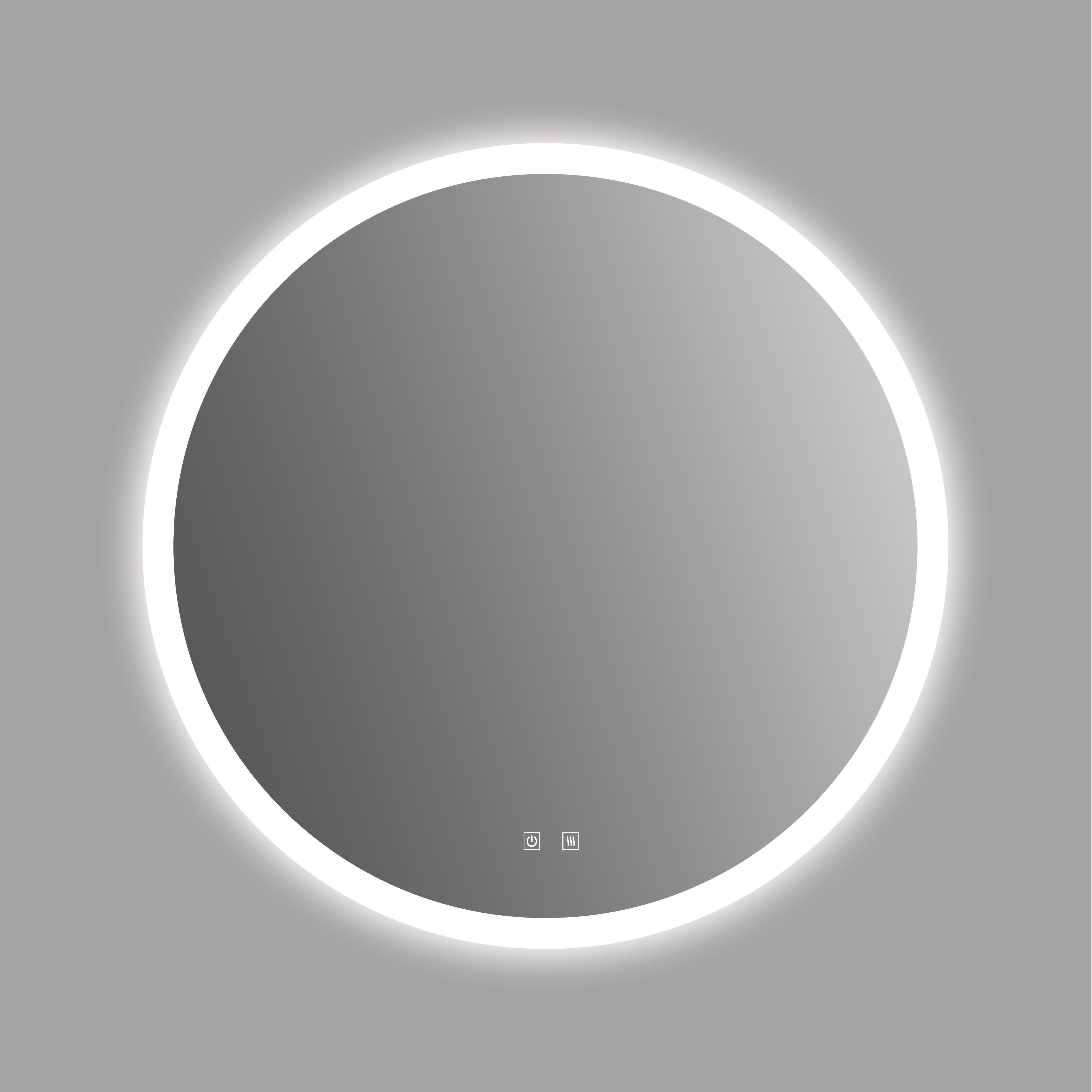 Espejo redondo con marco plástico negro de 80 cm ,Luz LED perimetral, Iluminación 3000-4000-6500ºk biled,con sensor cambio de color de color on/off led, dimmer , y sensor on/off antivaho, Ip44,marcado ce