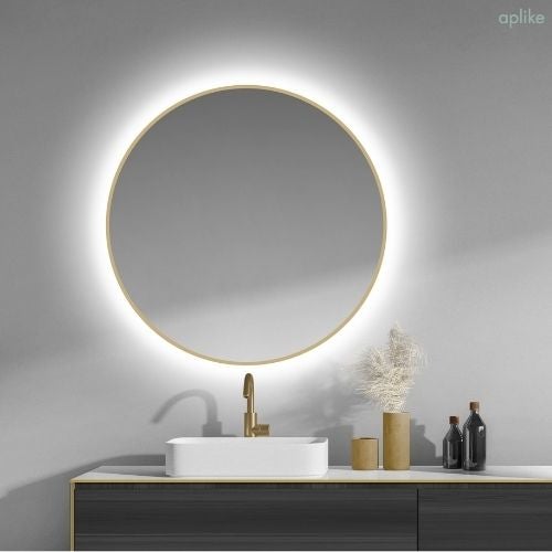 Espejo de Baño Redondo con Luz LED - Luz Blanca Fría (5700K) - Diámetro 60cm | Modelo Sidney (Dorado)