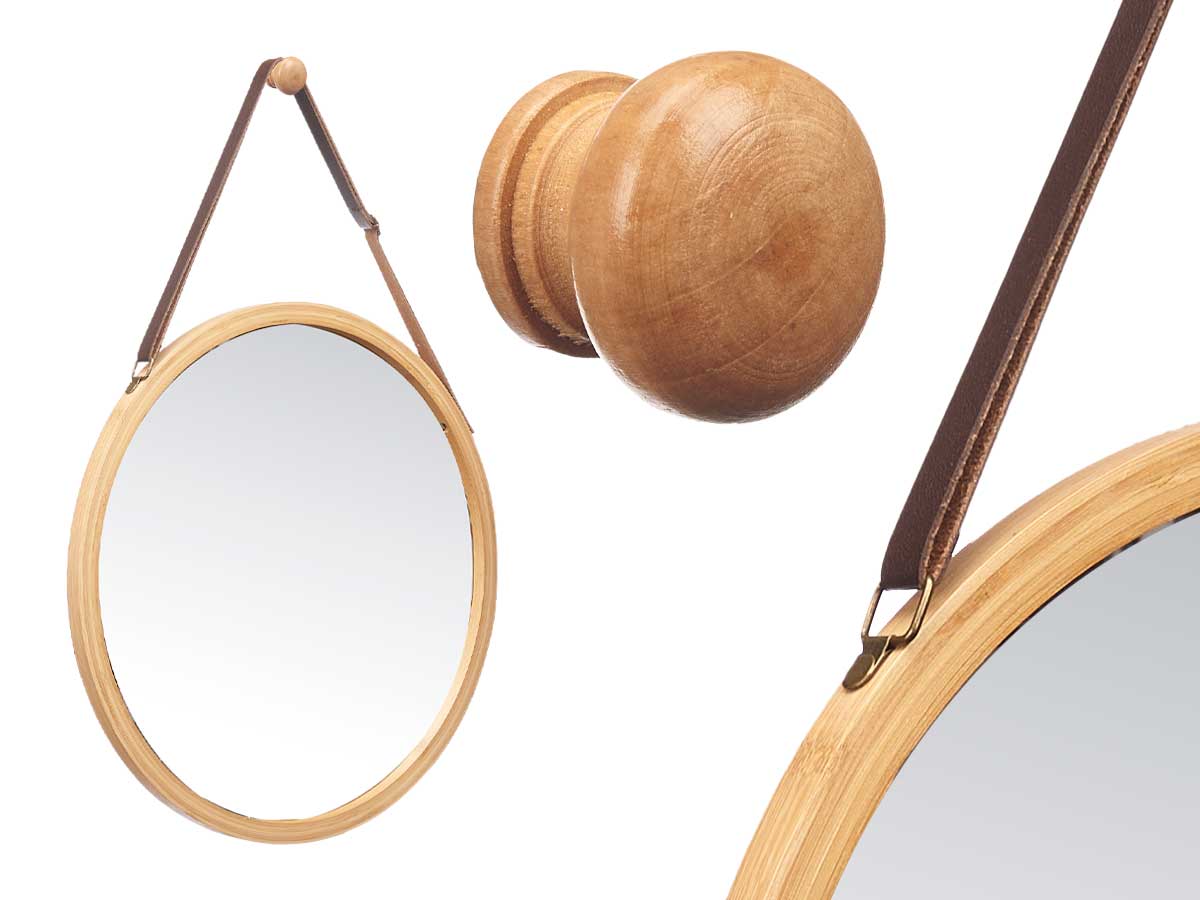 Dimensiones del Producto: 1,5 x 38 x 35 cm. Material: Bambu + Cuero + Cristal Medida Adicional: Correa: 70 cm