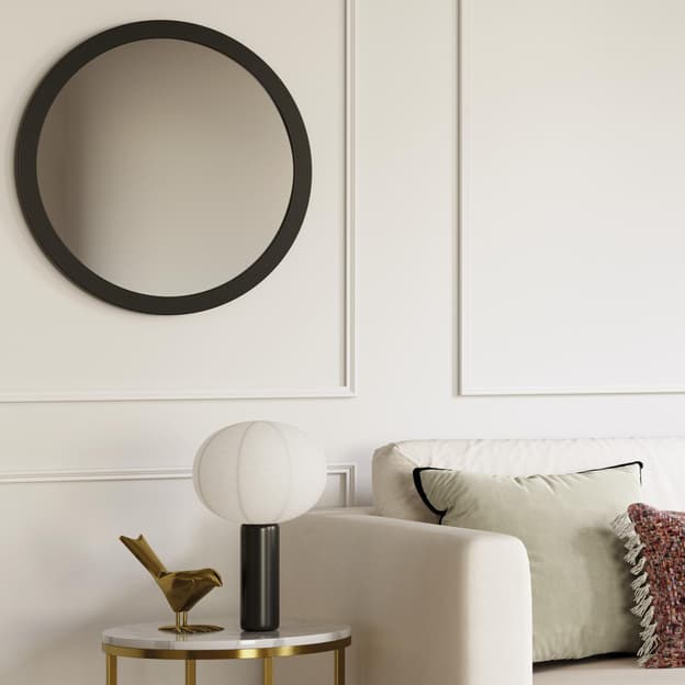 Espejo enmarcado de pared redondo Curl polipropileno negro mate INSPIRE de 55 cm de diámetro