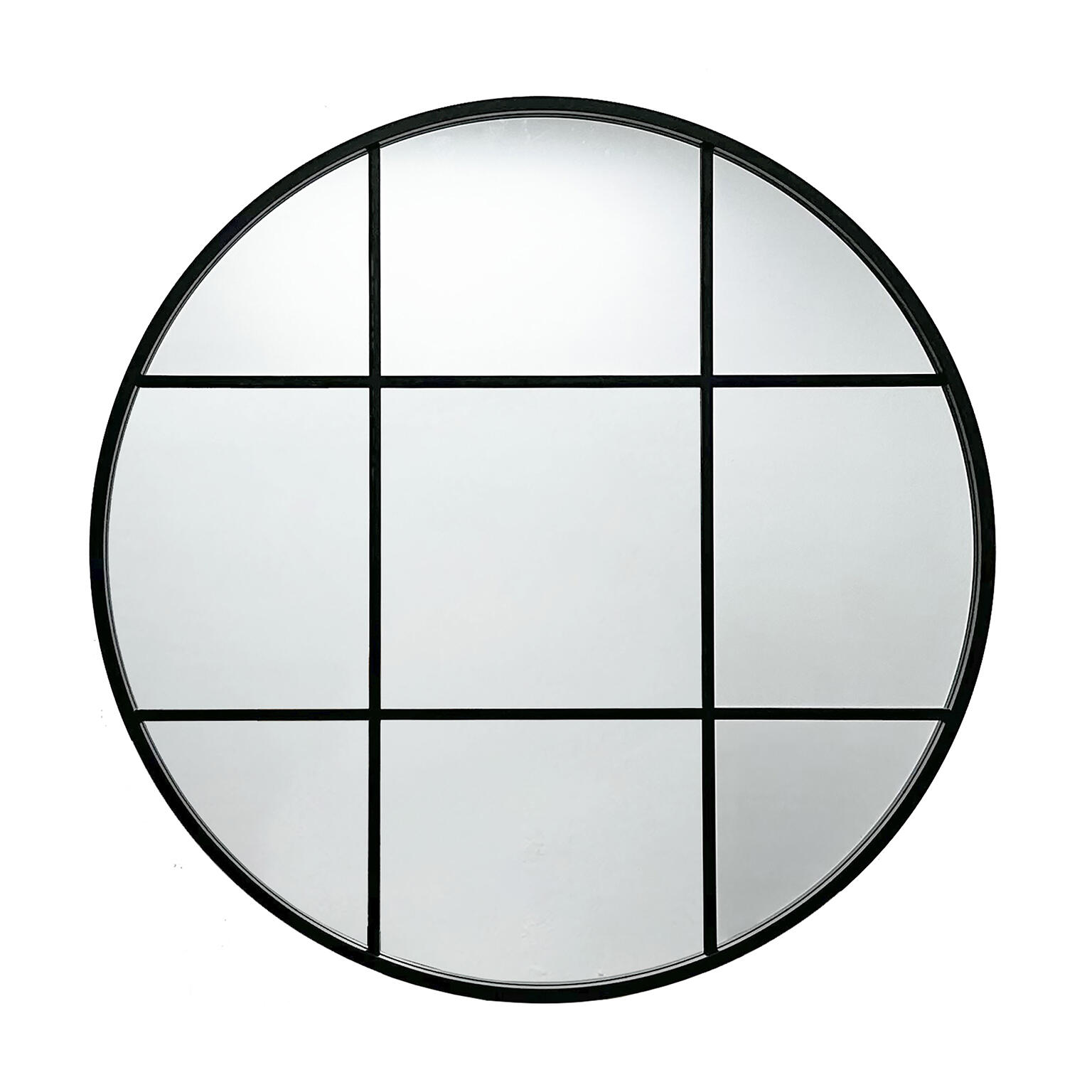 Espejo ventana redonda negra que combina la suavidad del círculo con cuarterones tipo loft, refleja y expande la luz creando sensación de amplitud funciona como pieza protagonista en recibidores o comedores y aporta estilo industrial chic sin necesidad de grandes intervenciones. Medidas: 80 x 3 x 80 cm.