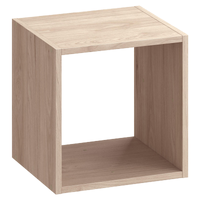 Estantería decorativa Spaceo serie Kub 1 cubo fabricada en madera aglomerada de 16 mm de espesor. Cuenta con un revestimiento exterior de alta calidad muy resistente y de fácil limpieza en color roble y cantos de ABS antigolpes. Su diseño es sin trasera, lo que le aporta mayor ligereza visual. Cuenta con el sello PEFC, que certifica que la madera utilizada proviene de bosques gestionados de forma sostenible y respetuosa con el medioambiente. Incluye toda la tornillería necesaria para su montaje (los herrajes para fijarlo a la pared se venden por separado). Combina los módulos de la Spaceo serie Kub y añade puertas, cajones o accesorios para crear espacios de ordenación decorativa en cualquier estancia de tu hogar. Medidas: 36 x 36,1 x 31,7 cm (alto x ancho x fondo).