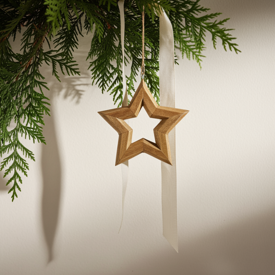 Estrella marrón decorativa en madera certificada FSC 100% - l13xw2xh13cm