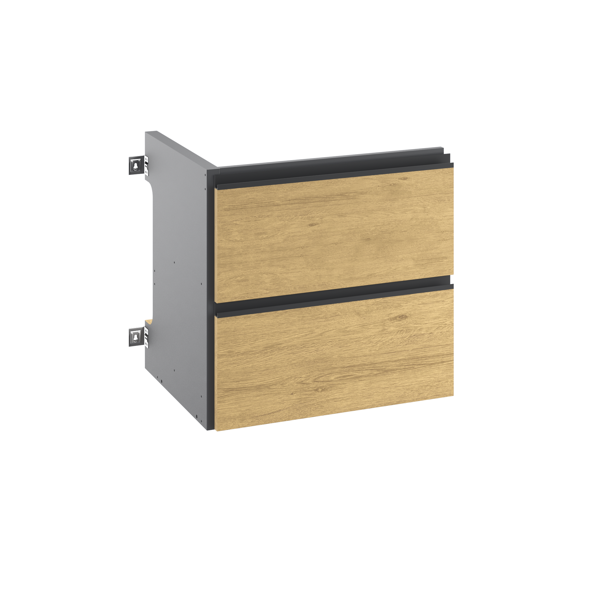 Mobiliario de lavabo Sensea serie Studio. Con el estilo industrial típico de la gama, se ha diseñado con materiales reciclados y se ha concebido para durar (10 años de garantía). El armario para debajo del lavabo está disponible en diferentes anchuras: 60, 90 y 120 cm. Los cajones, con un sistema silencioso de apertura y cierre, tienen una gran capacidad de almacenamiento y son lo suficientemente altos para almacenar los productos de higiene embotellados verticalmente. Los cajones tienen una abertura completa que facilita el acceso a todo el cajón, incluso a los productos almacenados en la parte inferior. En el interior, el espacio para el sifón se ha diseñado para ser lo más pequeño posible para optimizar el espacio de almacenamiento. Las manillas del armario están diseñadas ergonómicamente y son de color negro mate. Si deseas armonizar el estilo de tu baño y darle un aspecto industrial, puedes combinar los muebles con el lavabo, el grifo, la columna (para añadir más espacio, por ejemplo), el espejo, el lavabo o la encimera de la misma gama Studio. Los pies de la misma gama Studio no están incluidos y deben comprarse por separado. El mobiliario está disponible en 2 acabados: roble claro liso o roble claro estriado.