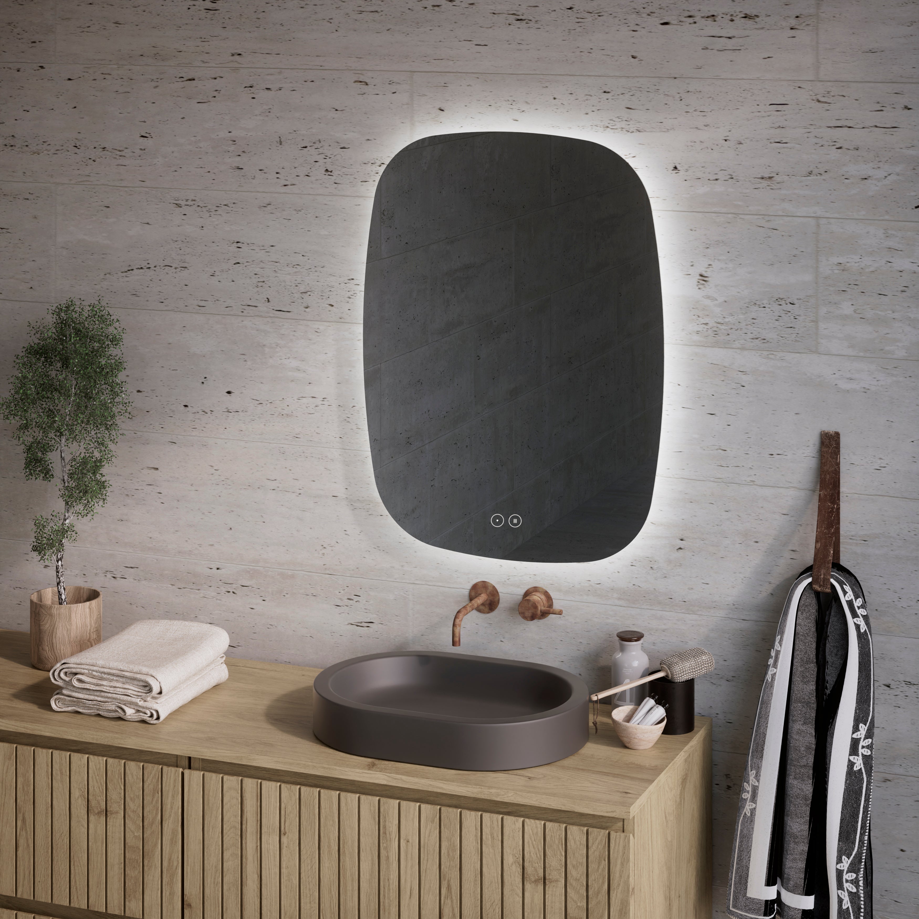 Feel Your Bath, Espejo de Baño Forma Nube 60x80 cm con Luz LED Regulable, Interruptor Táctil, Antivaho y Apagado Automático