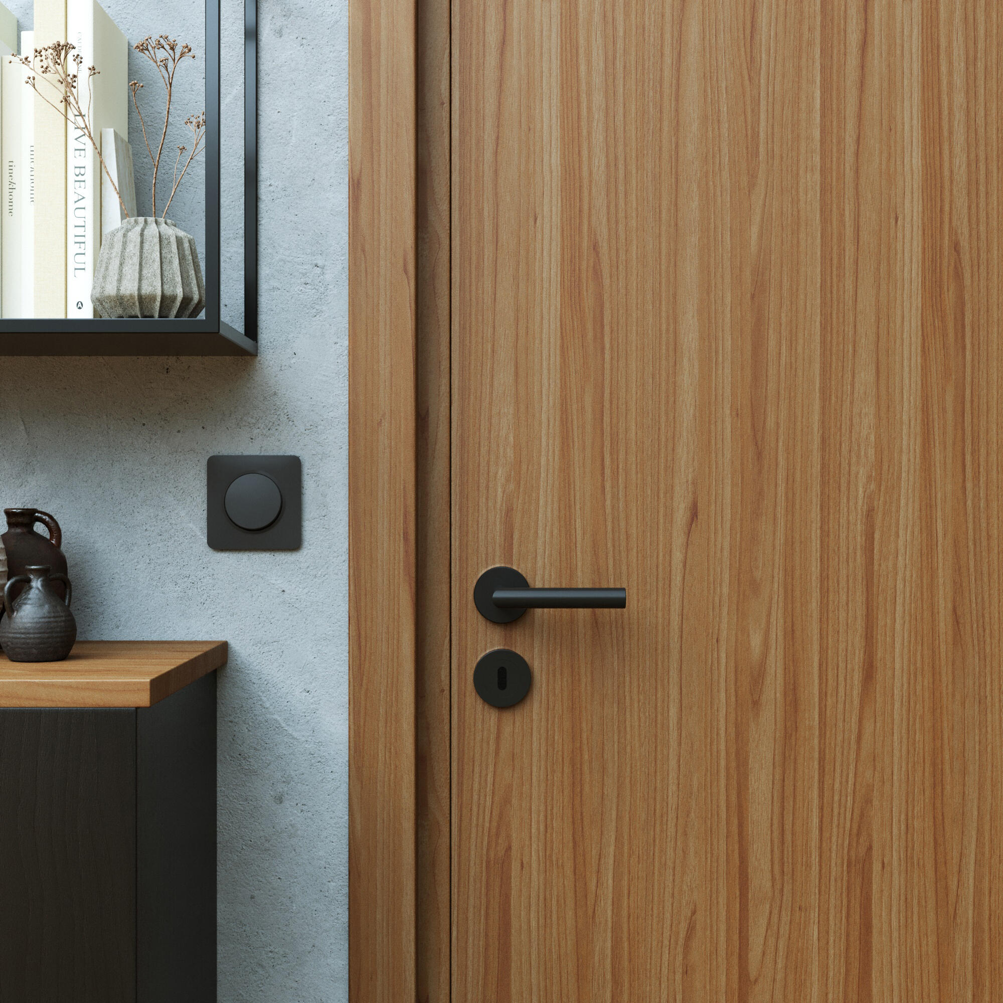 Las manillas de puerta LEE tienen una línea delicada que subraya la modernidad de una sala de estar o un baño.