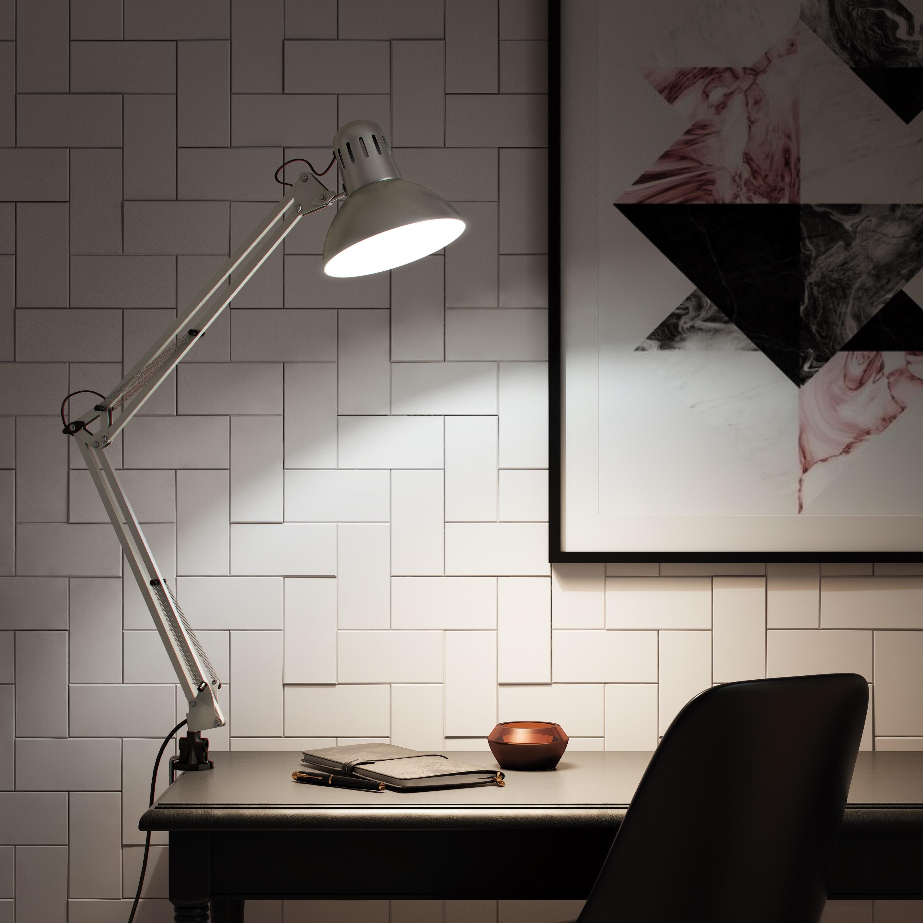 Flexo para escritorio compatible con casquillo E27 Arquitecto INSPIRE con estructura acero gris de pinza alimentación a red