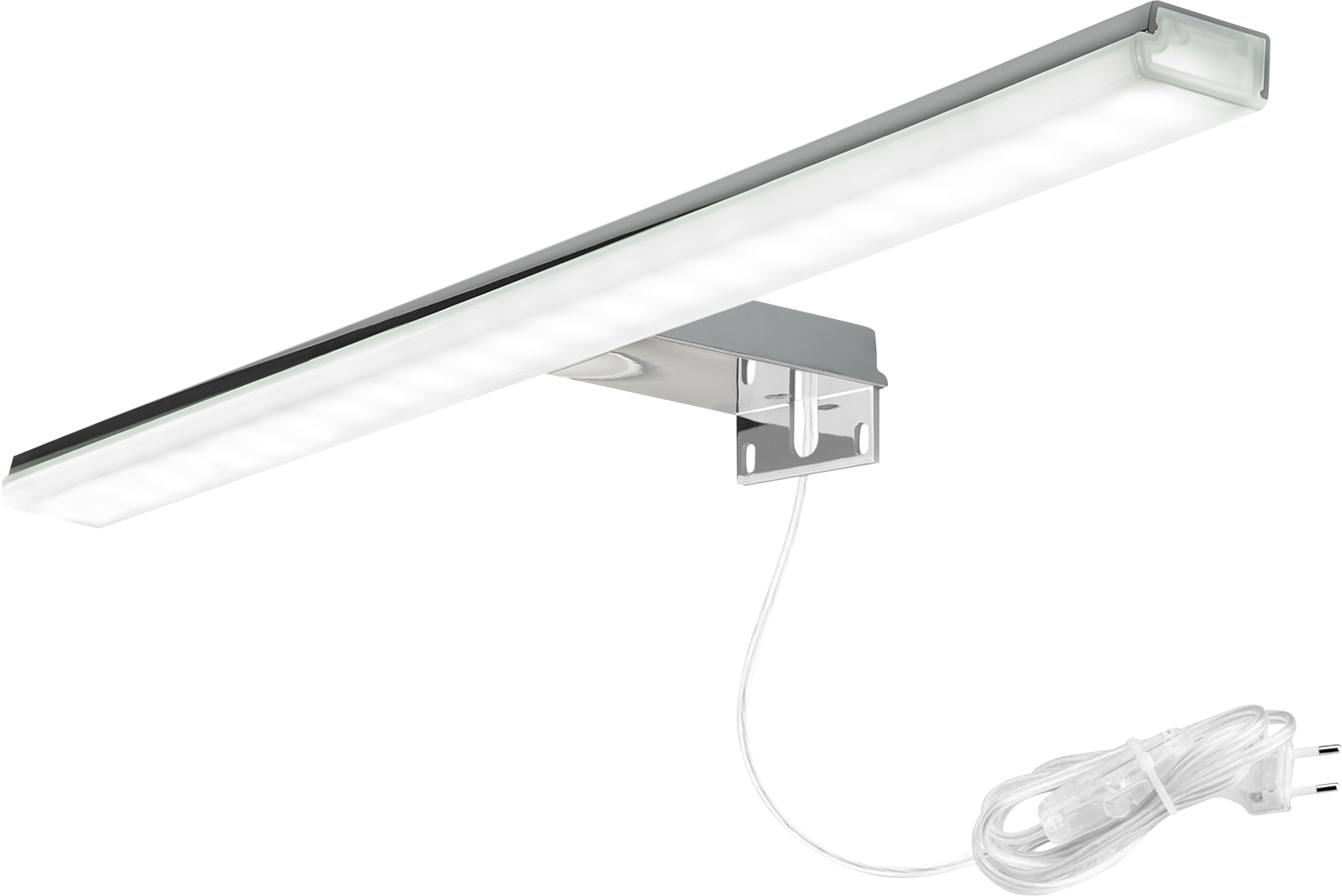 Aplique para espejo de baño led de 10 W de forma rectangular en color cromo. Proporciona una luz neutra para conseguir una iluminación ambiente. Cuenta con transformador y se vende montado para facilitar su instalación. Medidas: 45,8 x 3,2 cm (ancho x alto).