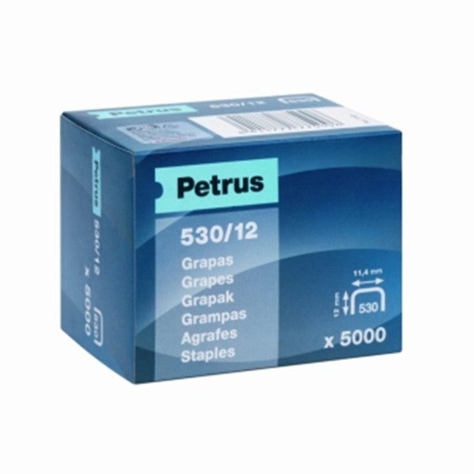Grapas 560/12 caja de 5000 fabricadas con alambre cobreado de gran calidad. Recomendadas para grapadoras Petrus 1530. - Caja de 5000. - 12mm.