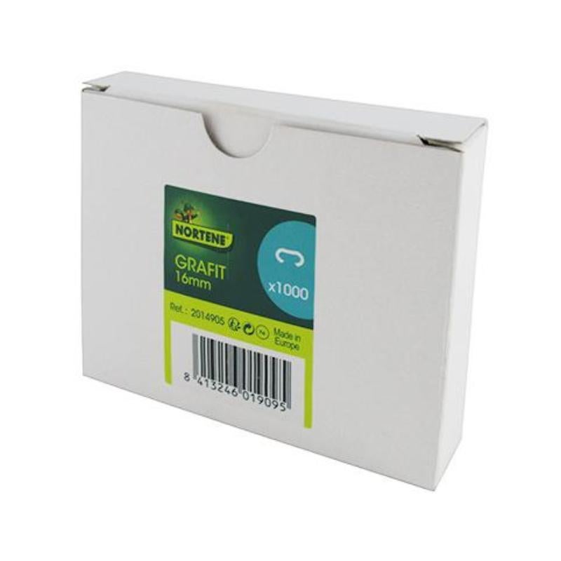 Grapas para malla 2014905 GRAFIT. Para facilitar una adecuada instalación de tu cercado. - Acero galvanizado. - 16 mm. - Galvanizado. - 13 g. Caja 289 g. - Caja de 1000 uds.