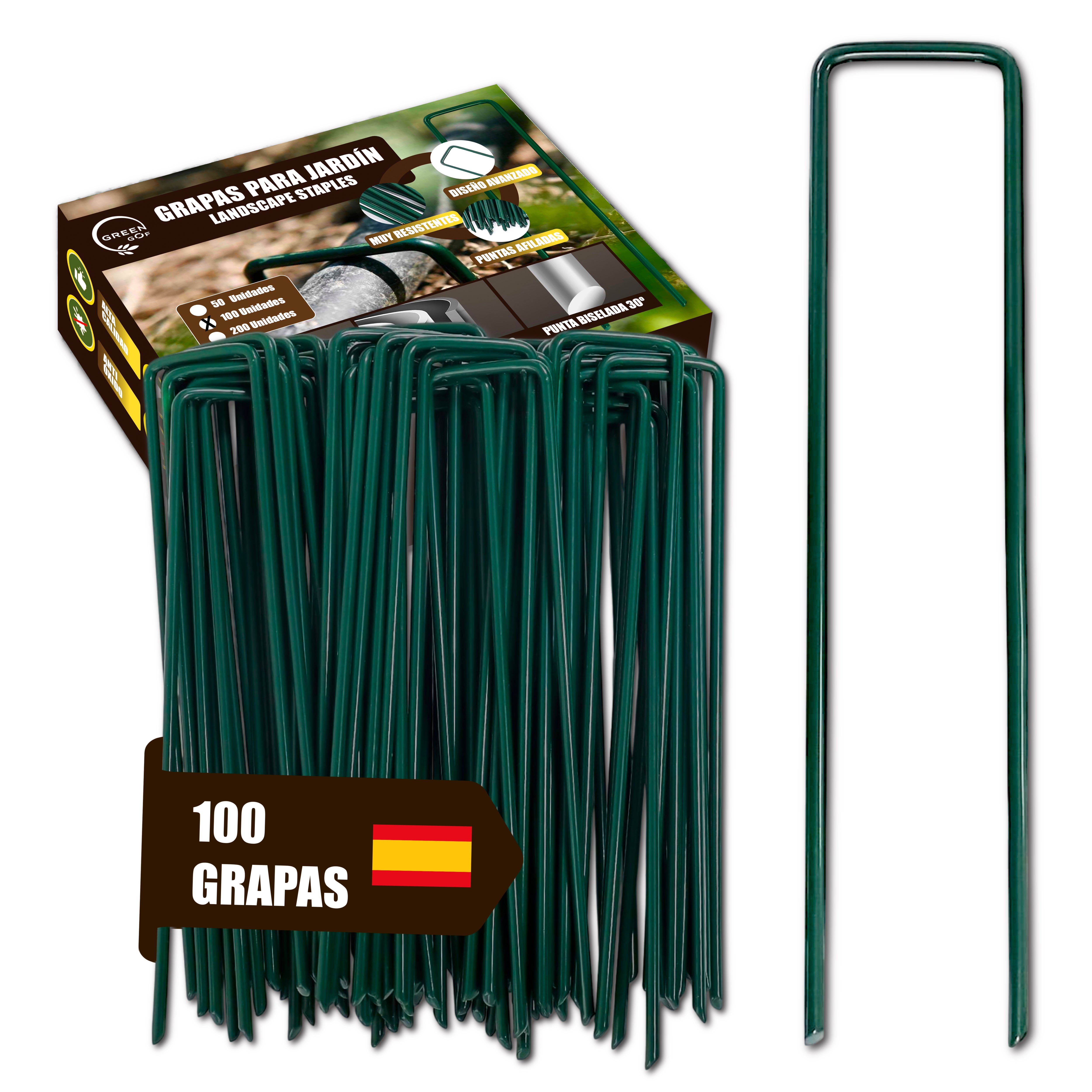 GREEN GOF 100 Grapas Verdes para Cesped Artificial y Malla Antihierba - Acero Galvanizado, 15x4cm, Ø3mm - Ultra Resistentes y Anticorrosivas.