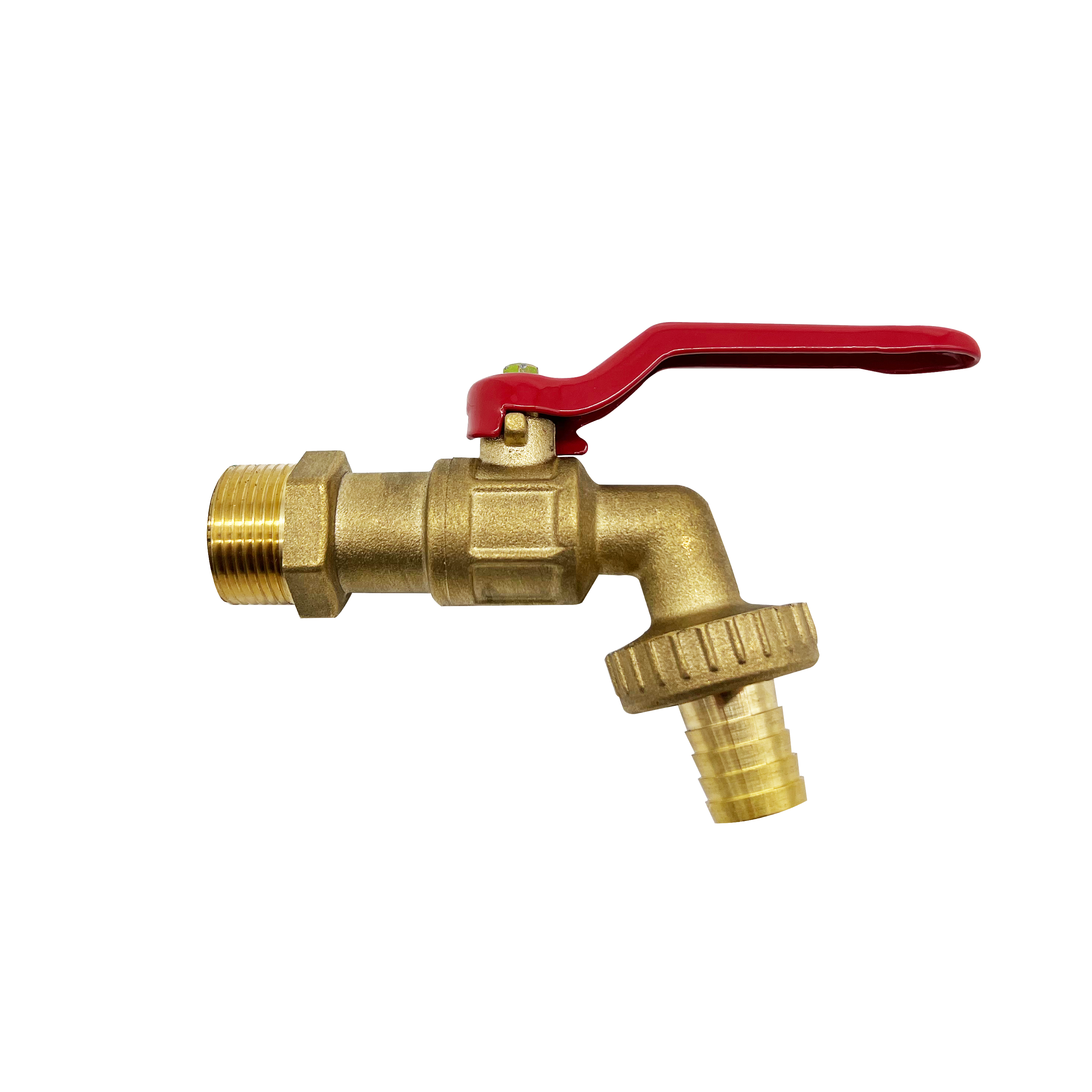 Grifo de servicio EQUATION de latón con palanca plana y entrada y salida macho 1/2" (15/21) y macho 3/4" (20/27). Permite abastecer de agua o desconectar los aparatos girando la palanca un cuarto de vuelta. El conector estriado de 17,5 mm de diámetro permite fijar fácilmente la manguera de jardín con una abrazadera. Está diseñado para resistir una presión de hasta 16 bares y tiene 5 años de garantía.