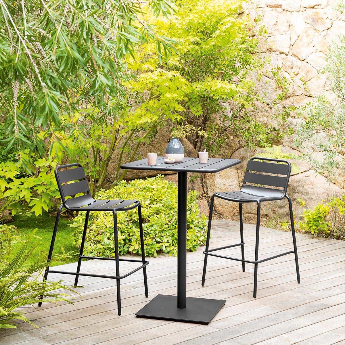 Más información Este enlace se abrirá en una nueva ventanaHespéride - Mesa de jardín alta Phuket Gris - 2 plazas - Hespéride