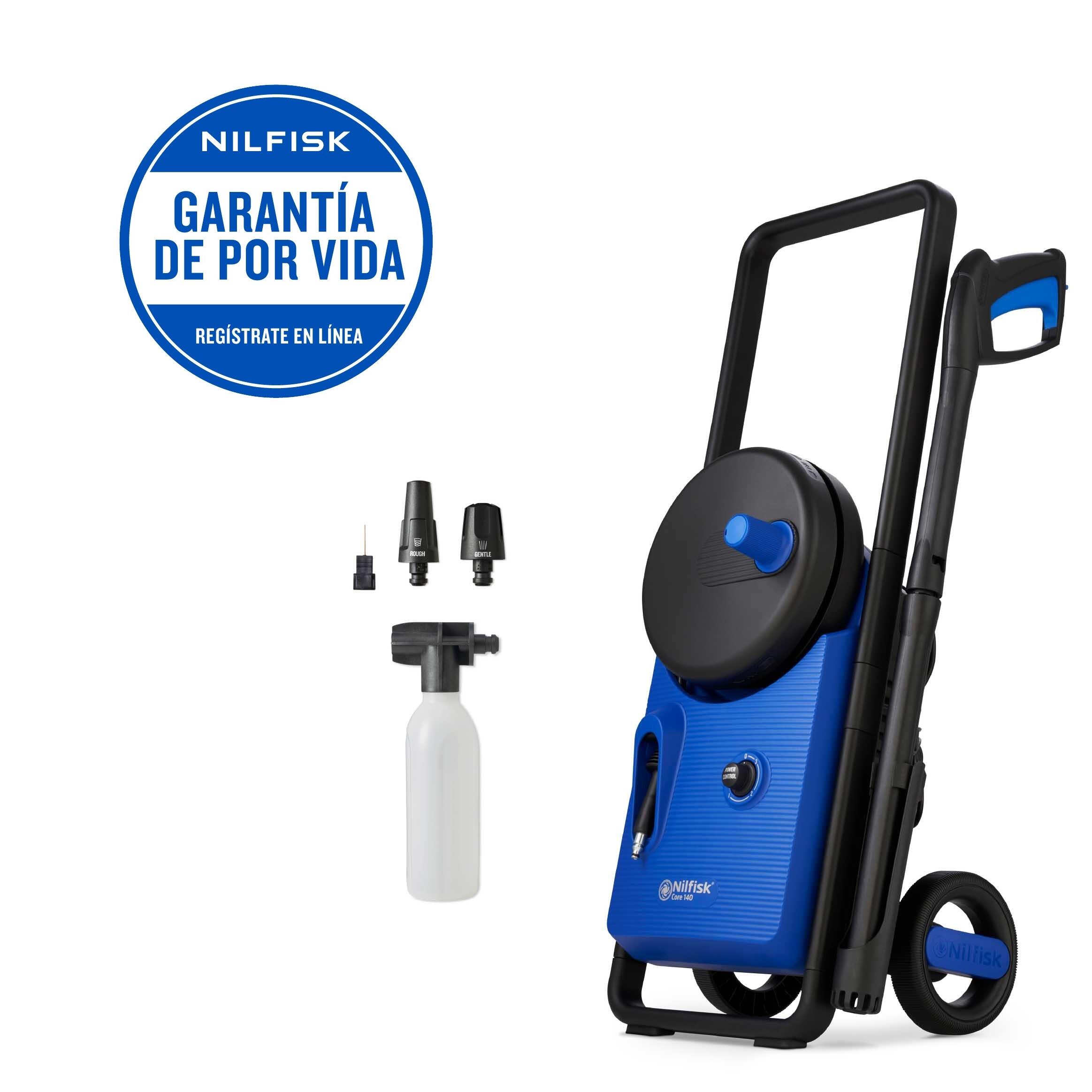 ***GARANTIA DE POR VIDA *** Registra tu producto en yournilfisk.com dentro de los 90 días siguientes a la compra. Aplican términos y condiciones. *** ACCESORIOS: Incluye Deposito Detergente Externo, Boquilla Abanico, Boquilla Rotativa, Aguja de limpieza de boquillas. *** ENROLLADOR DE MANGUERA *** El carrete interno ofrece un práctico e rápido almacenamiento para la manguera. ***BOMBA METÁLICA *** Bomba de metal de larga duración que proporciona potencia y durabilidad al núcleo. *** MANGUERA ULTRAFLEX *** Manguera ultra flexible de 6m, que reduce el riesgo de torceduras y nudos. *** Es ideal para limpieza de muebles y herramienta de jardín, bicicletas, motocicletas y coches. Además, dispone de 5 metros de cable de alta presión, caudal regulable del detergente, disyuntor térmico, enrollador de manguera, presión y caudal ajustable y ruedas que facilitan el transporte de la herramienta. Cuenta con el mejor desarrollo tecnológico, cuyo objetivo es que la limpieza doméstica sea más simple y eficaz. Su motor Ultra Torque le aporta mayor fiabilidad y durabilidad, y gracias a su nuevo diseño funcional, conseguirás una limpieza más inteligente, fácil y ergonómica. Cuenta con la máxima calidad gracias a su bomba metálica y dispone de sistema de regulación de potencia para una limpieza precisa y eficaz.