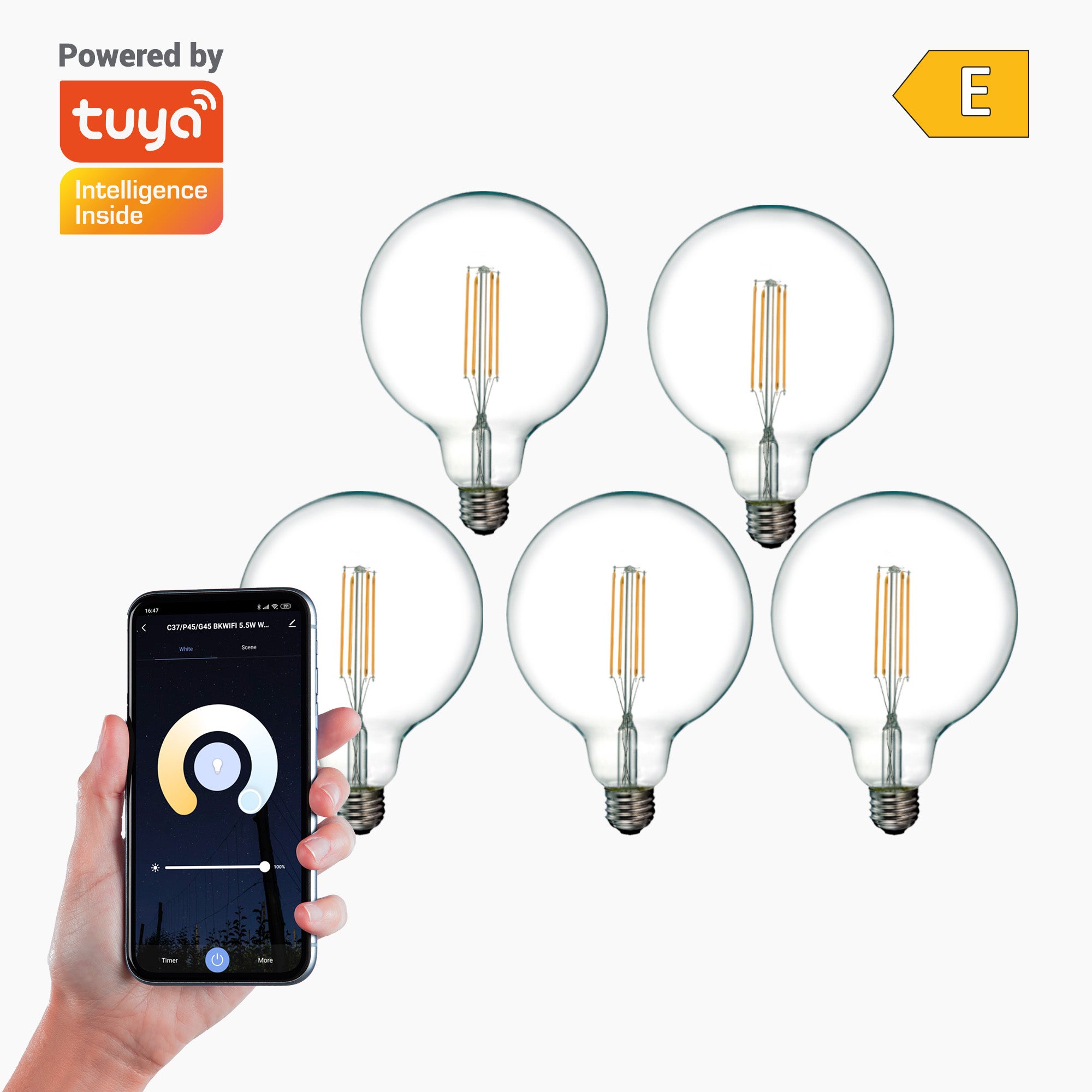 IluminaShop Bombilla LED Inteligente Smart E27 G125 Filamento Dimable CCT 7W WiFi Compatible con Alexa y Google Home 3000+4000+6000