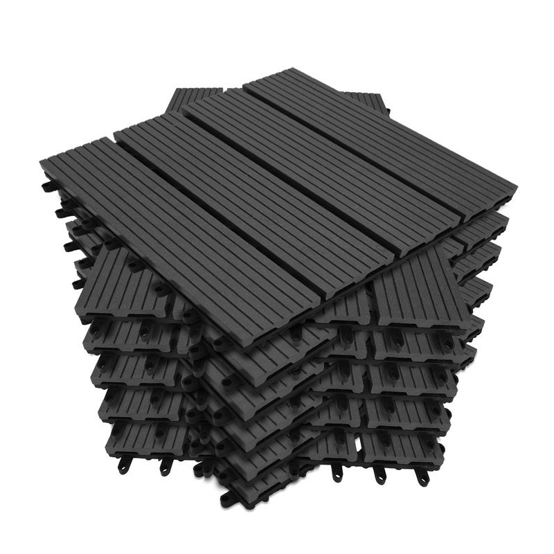 Juego de 11 losas de terraza de madera compuesta antracita con clip de WPC para jardín, piscina y balcón