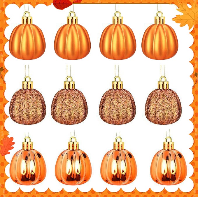 ● Contenido del paquete: Recibirás 12 adornos de calabaza de Halloween en tres estilos diferentes: dorado brillante, mate y brillante. Esta cantidad es suficiente para tus necesidades de decoración diaria o navideña. También puedes compartirlos con tus amigos.