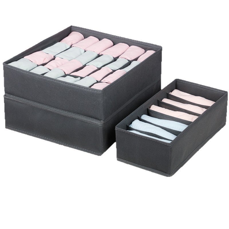 Juego de 3 cajas de almacenaje con 6 y 24 compartimentos, cestas, 32*32*10/32*16*10 cm, aptas para pantalones y ropa
