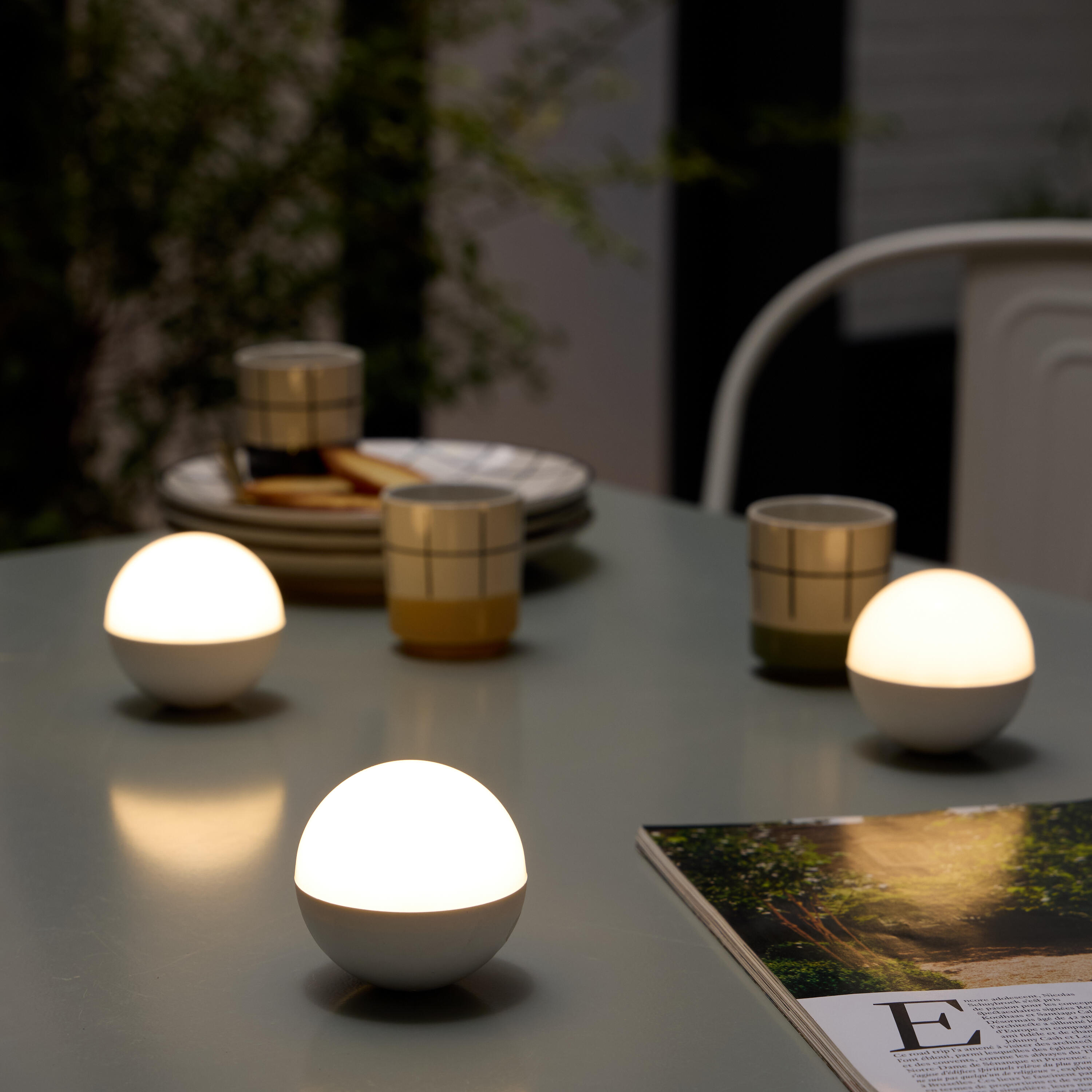 Set Mini Caspe de 3 luces para sombrilla de Inspire. Cada lámpara tiene un brillo de 300 lúmenes y una temperatura de color de 3000K, creando una atmósfera cálida. Fabricadas en policarbonato blanco con clasificación IP54, son perfectas para uso en exteriores. Las luces son magnéticas y se pueden fijar fácilmente, además de recargarse mediante USB-C, ofreciendo hasta 2 horas de autonomía. El control remoto incluido te permite ajustar la intensidad de la luz en tres niveles: 100 %, 30 % y 15 %. Este producto LED es reparable y cuenta con una garantía de 5 años, asegurando un uso práctico y duradero.