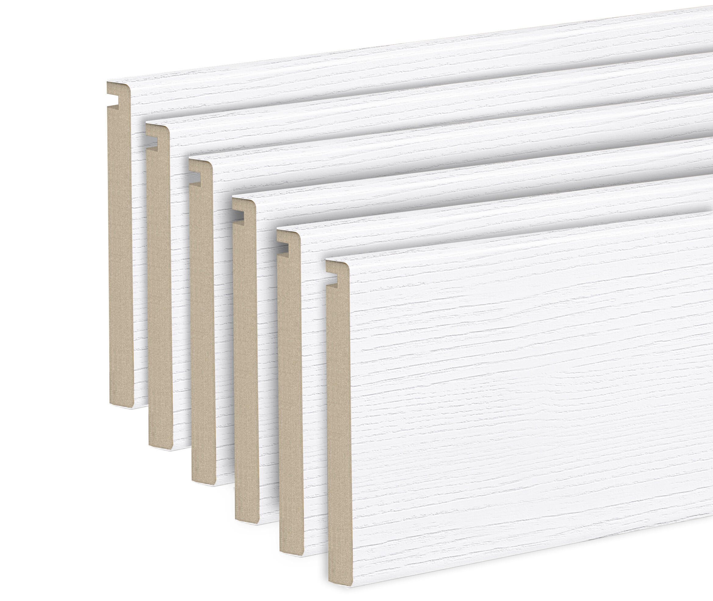 Kit de 6 tapetas Nordic blanco compuesto por 4 tiras de tapeta de 2200 x 80 x 12 mm y 2 tiras de tapeta planas con canal interior de 80 x 10 mm. Producto fabricado en la Unión Europea con 3 años de garantía.
