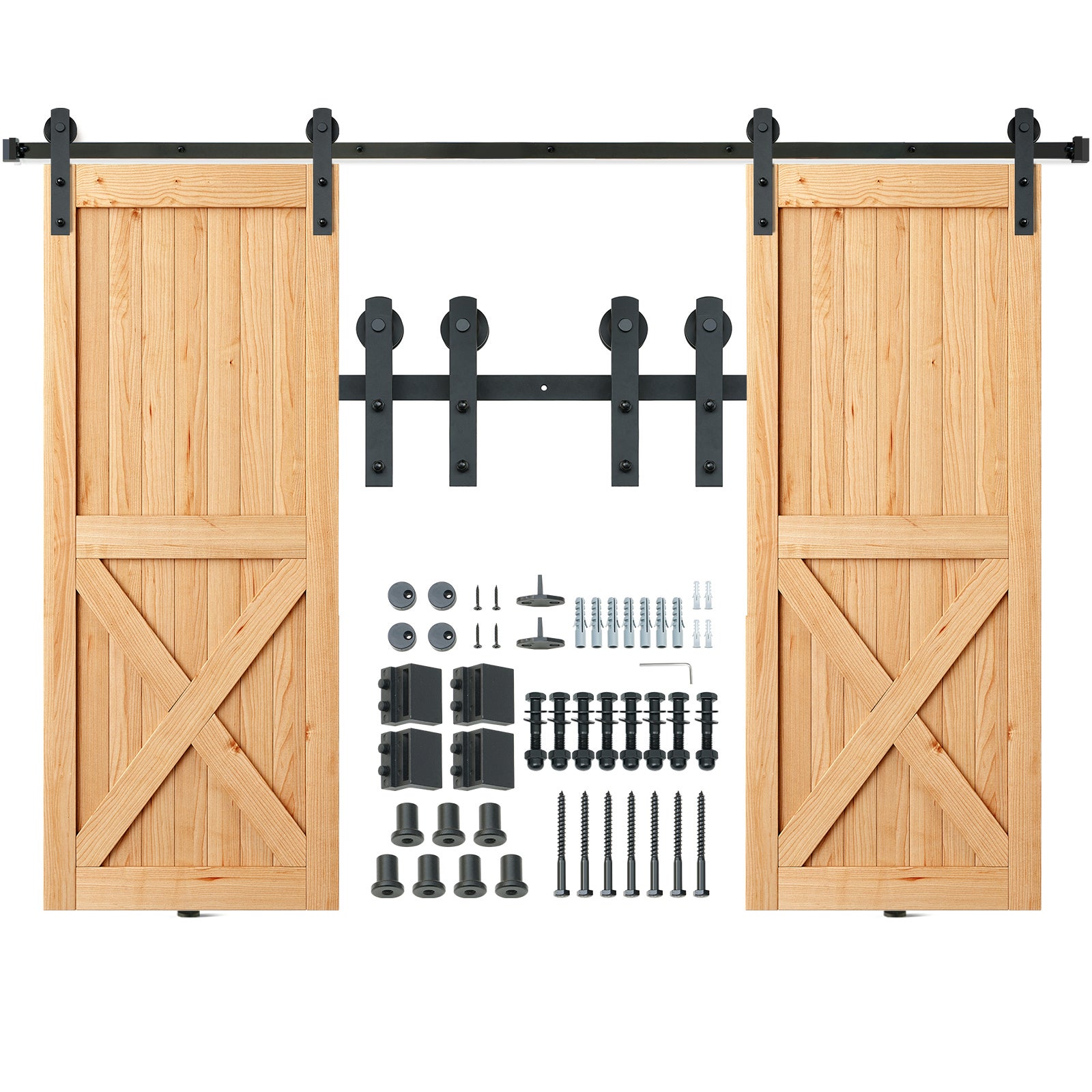 Transforme su espacio con este kit de herrajes para puertas de granero de primera calidad, diseñado para brindar estilo y resistencia. Hecho de acero al carbono de alta calidad, soporta puertas que pesan hasta 330 libras, lo que lo hace ideal para uso intensivo. Perfecto para puertas dobles, este kit es una mejora versátil para su hogar, oficina o granero.