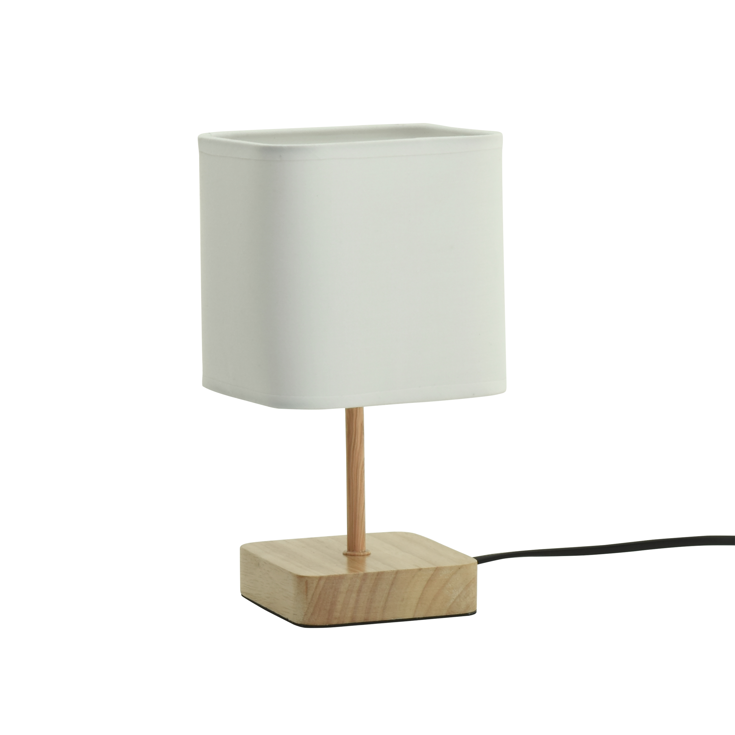 Lámpara de mesa sin fuente de luz Inspire Akora fabricada en madera y textil con acabado de color blanco. Las lámparas de sobremesa son ideales para decorar, crear nuevos ambiente en las estancias y diferentes atmósferas en recibidores, salones, comedores y habitaciones; dependiendo de la intensidad de la luz que emitan, también pueden servir para iluminar una mesa de escritorio o para dotar al espacio de un estilo específico (romántico, moderno, etc.). La lámpara Akora cuenta con un índice de protección IP20 (recomendada para espacios interiores en los que la iluminación no se vea expuesta a factores externos peligrosos), casquillo E14 (tiene una rosca de 14 mm con la que se enrosca la bombilla) y 230 V de tensión. Su cable negro mide 1,5 m de largo. Ofrece 3 años de garantía. Medidas: 13 x 23 cm (ancho x alto).