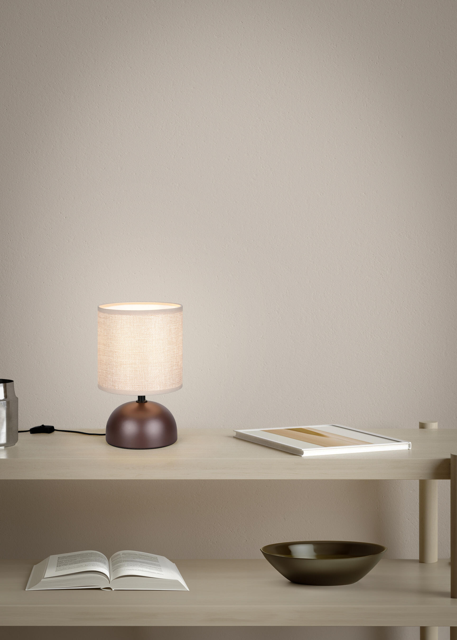Lámpara sobremesa LUCI MARRÓN 1X E14 H23 La lámpara de sobremesa LUCI impresiona por su elegante diseño. La base redondeada y la pantalla cilíndrica de tela armonizan perfectamente entre sí y permiten que su cómoda, alféizar o mesilla de noche brillen con una luz preciosa