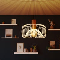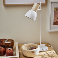 Lámpara de mesa Inspire Venosa. Perfecta para iluminar superficies pequeñas como mesitas de noche, escritorios, etc. Gracias a su diseño depurado que mezcla metal blanco mate y madera natural, esta lámpara colgante Venosa es perfecta para aportar un toque escandinavo a la decoración de tu casa. Cuenta con el sello FSC, que certifica que la madera proviene de bosques gestionados de forma sostenible y respetuosa con el medioambiente. Puedes personalizar su iluminación eligiendo cualquier bombilla de E27 Lexman. Ofrece 5 años de garantía. Medidas: 15 x 45 cm (ancho x alto).