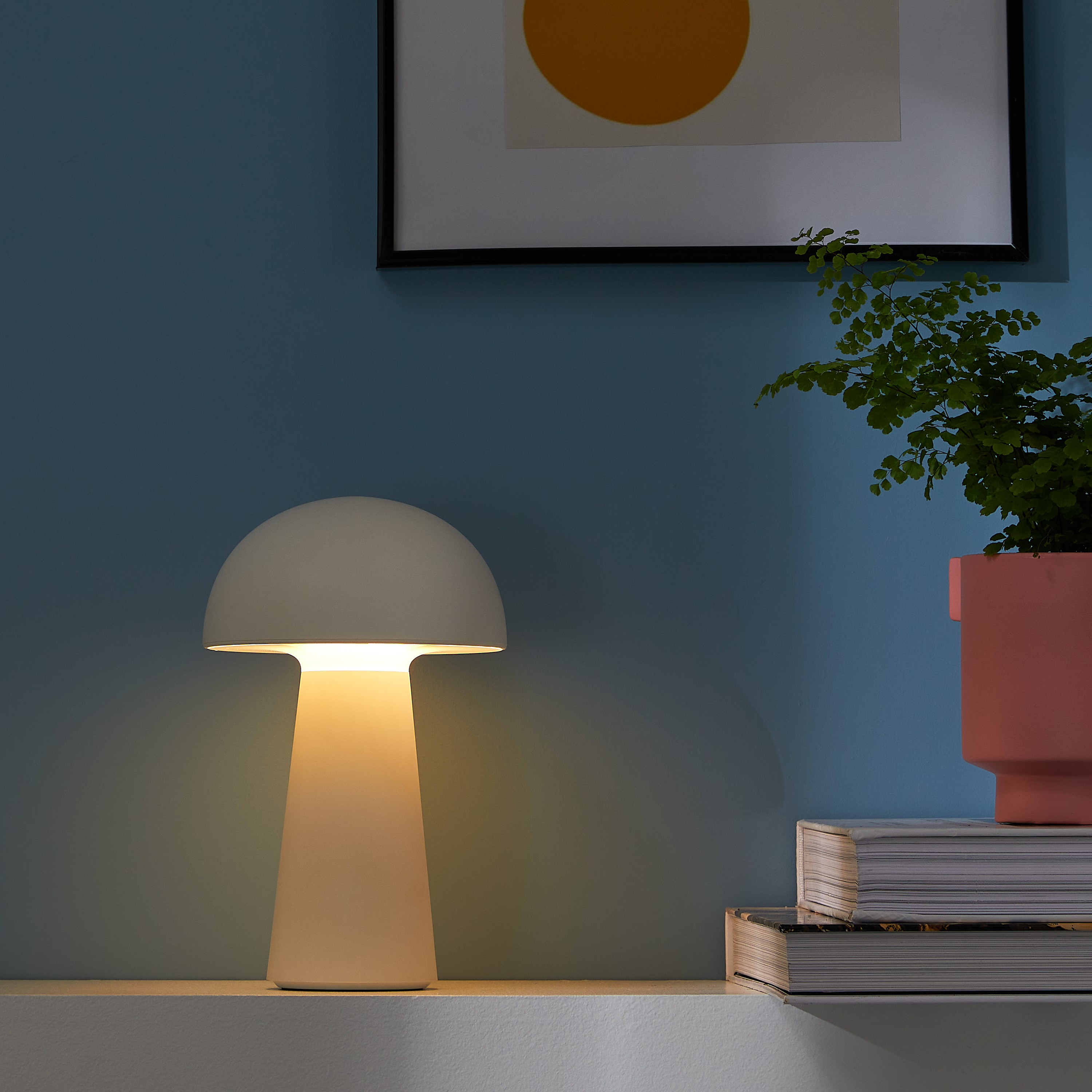 Lámpara de mesa sin cable LED Sigrun INSPIRE con estructura blanca pantalla blanca luz cálida 2700K